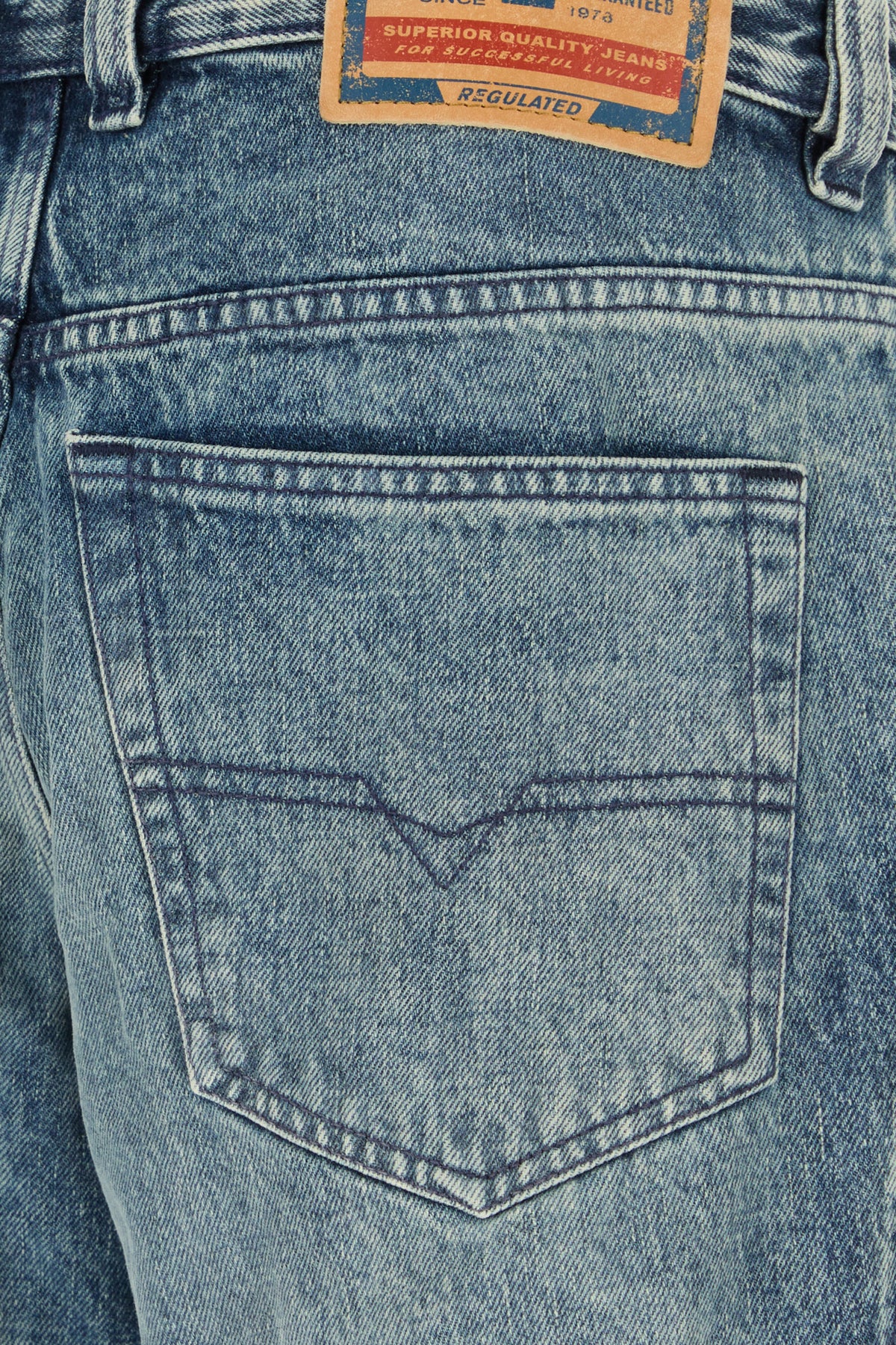 Jeans realized in stonewashed cotton and hemp denim enriched by logoed label at the back.