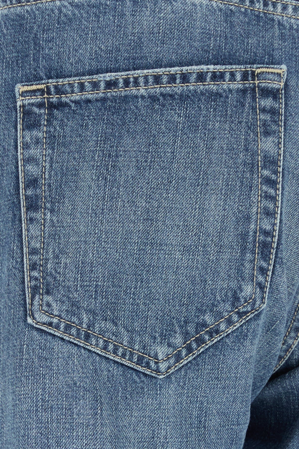 Jeans realized in stonewashed and slightly distressed pure cotton denim enriched by contrasting logoed label at the back.