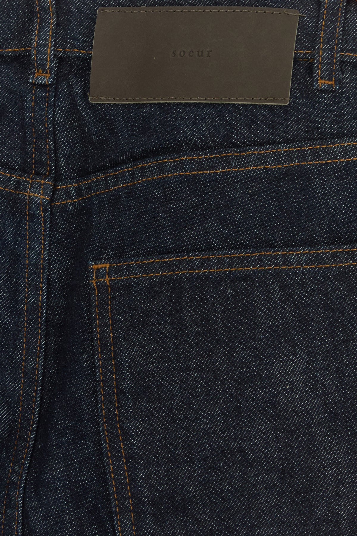 Jeans realized in pure cotton denim enriched by contrasting logoed label at the back.