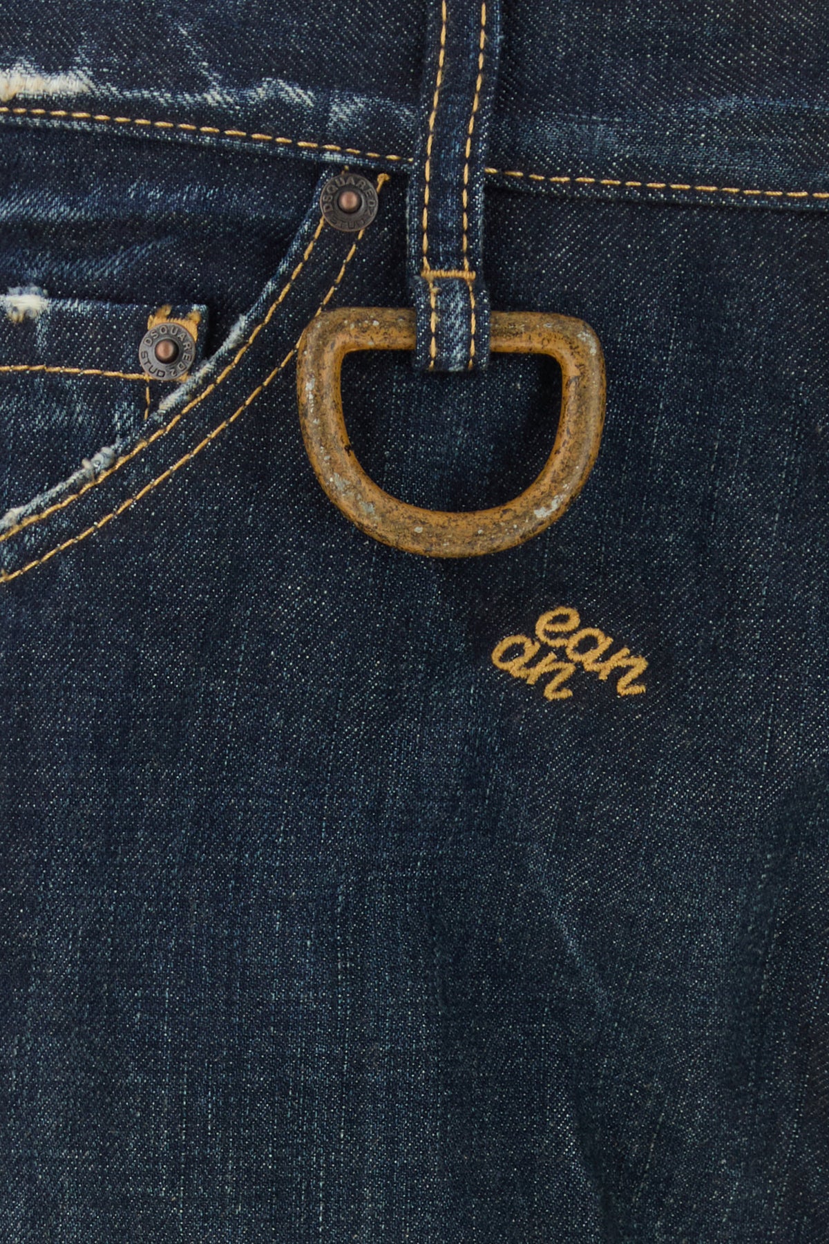 Jeans realized in stonewashed and distressed pure cotton denim enriched by contrasting logged label at the back.
