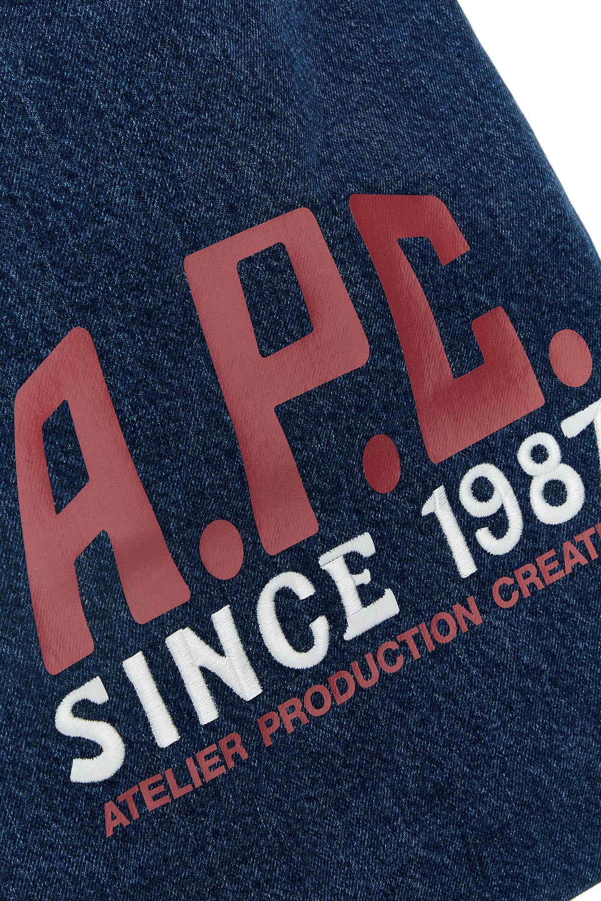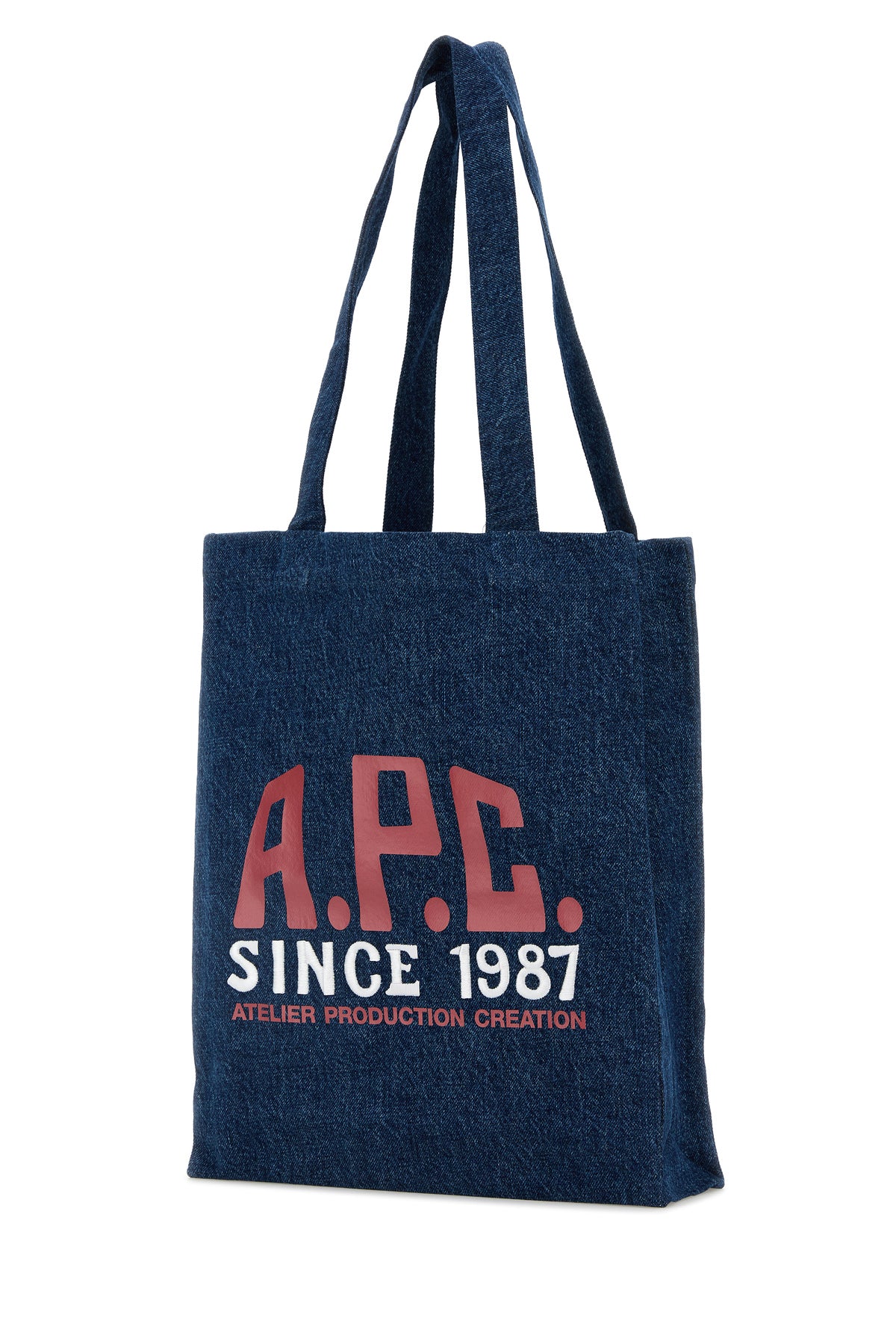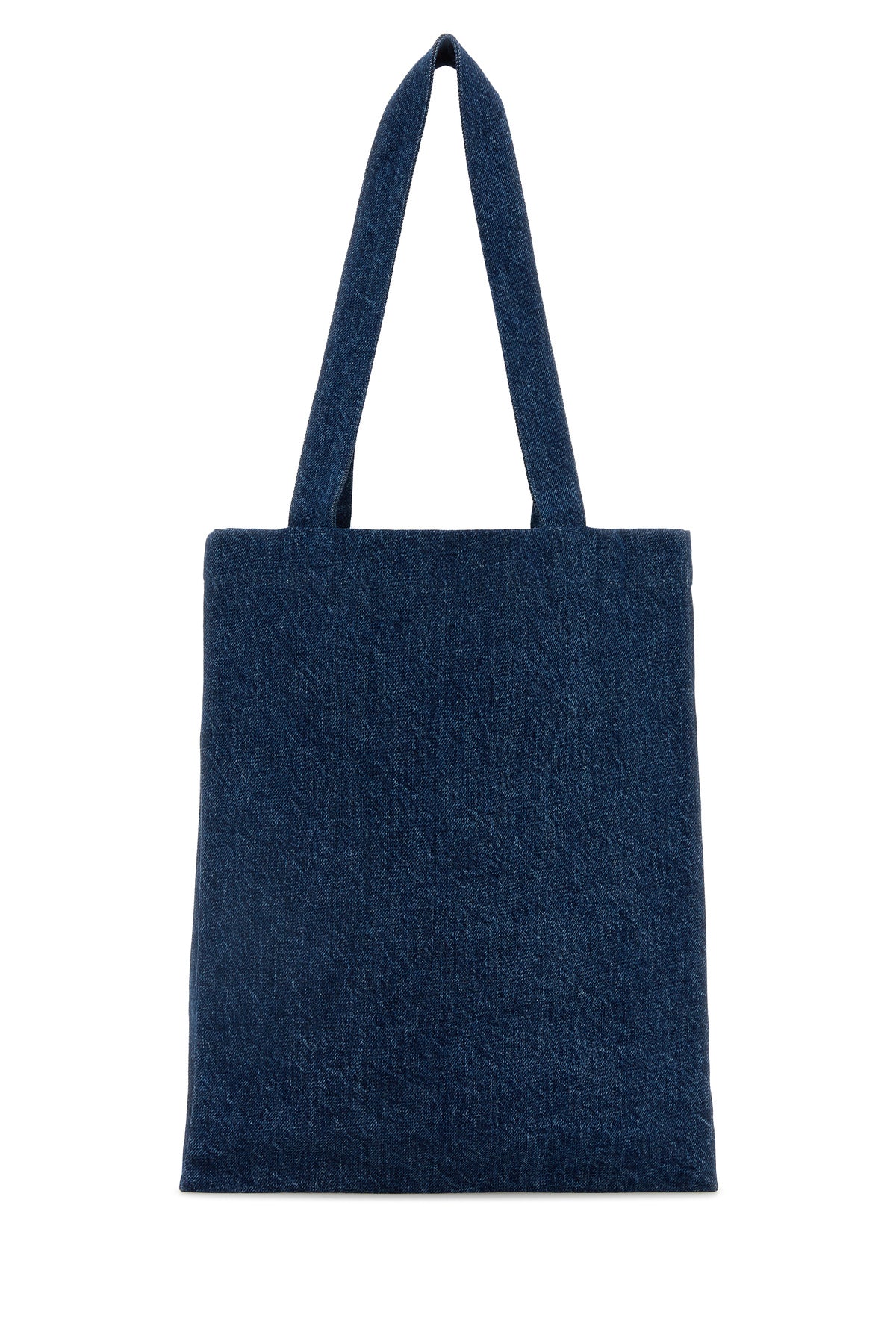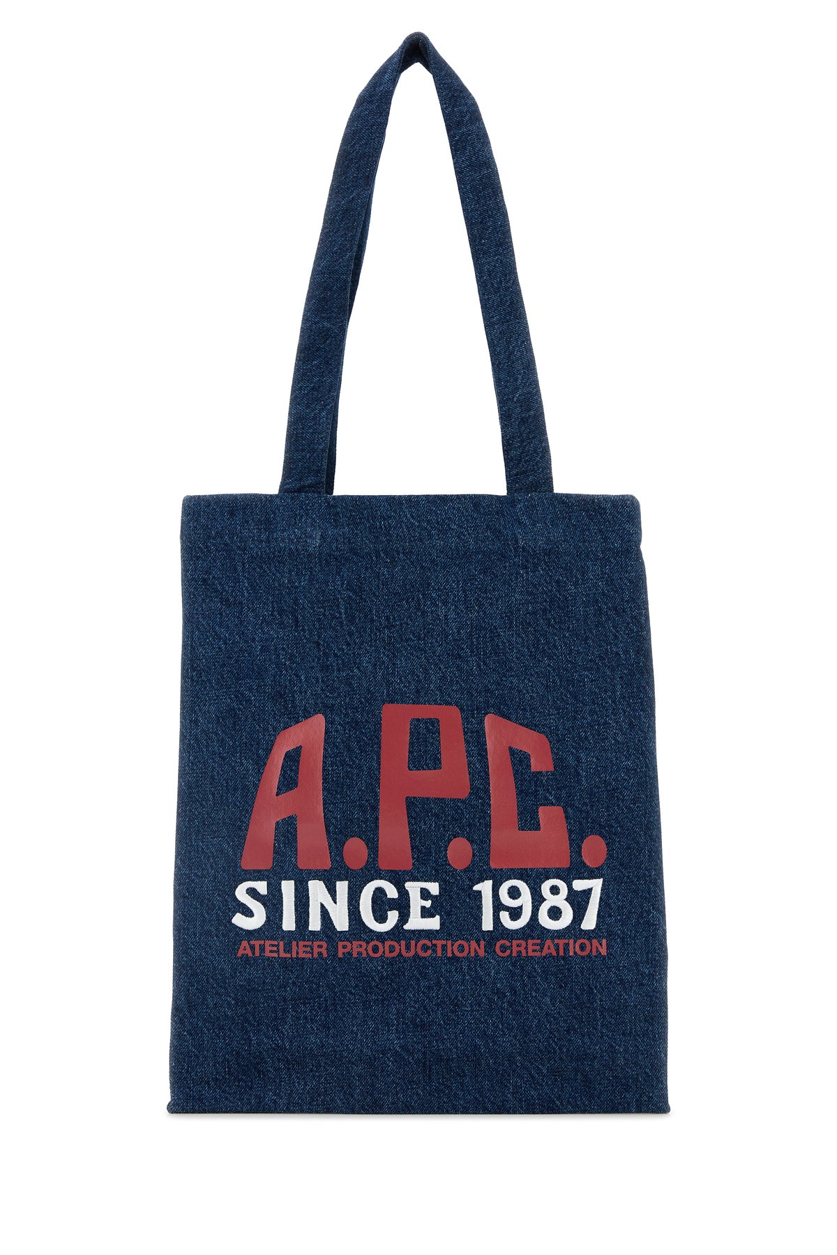 Shopping bag realized in pure cotton denim characterized by contrasting peculiar logoed print at the front.