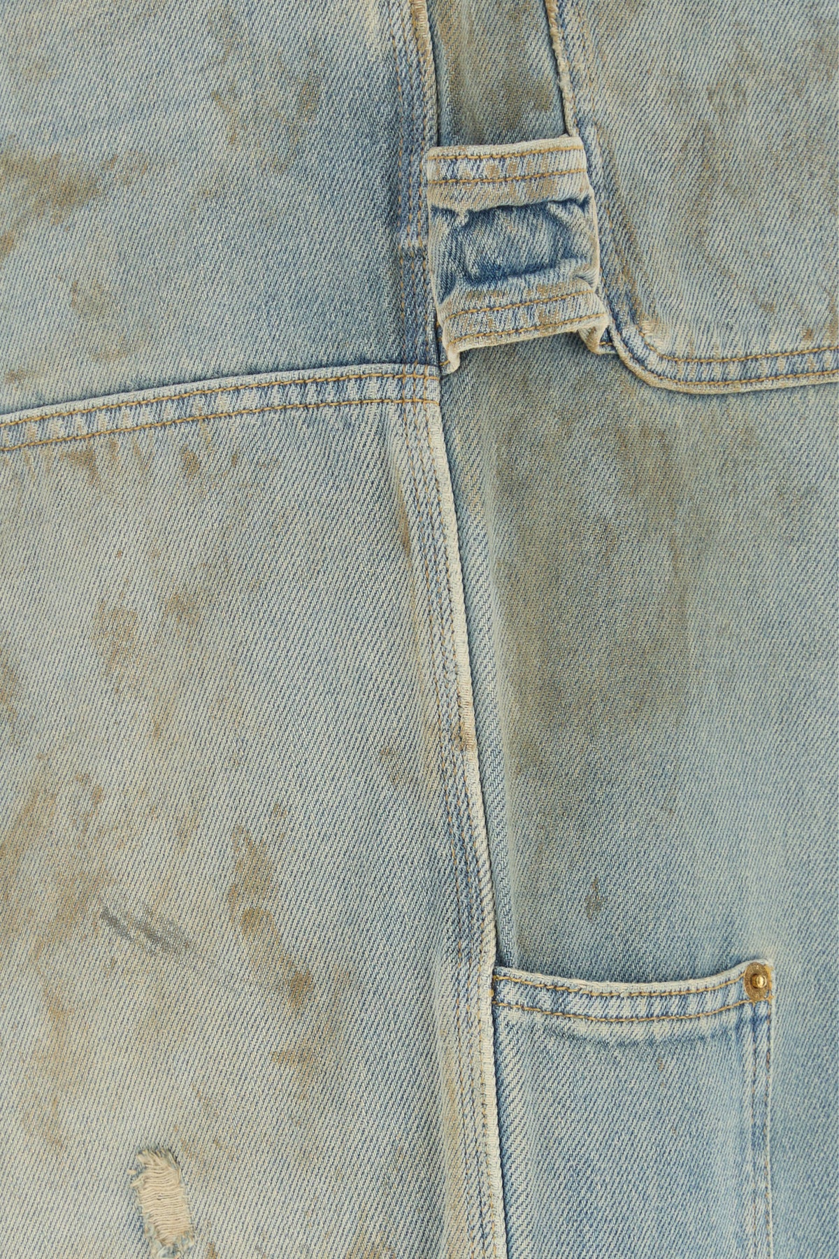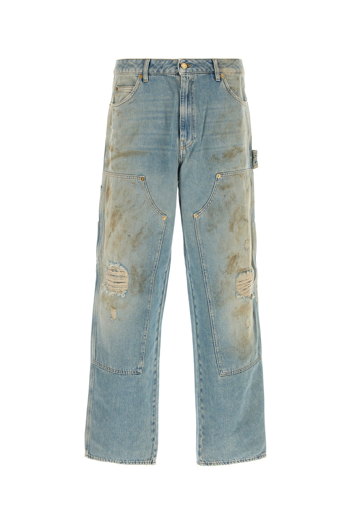 Wide-leg jeans realized in vintage-effect pure cotton denim with rips and intentional dirties enriched by metal Half Stars details at the back.