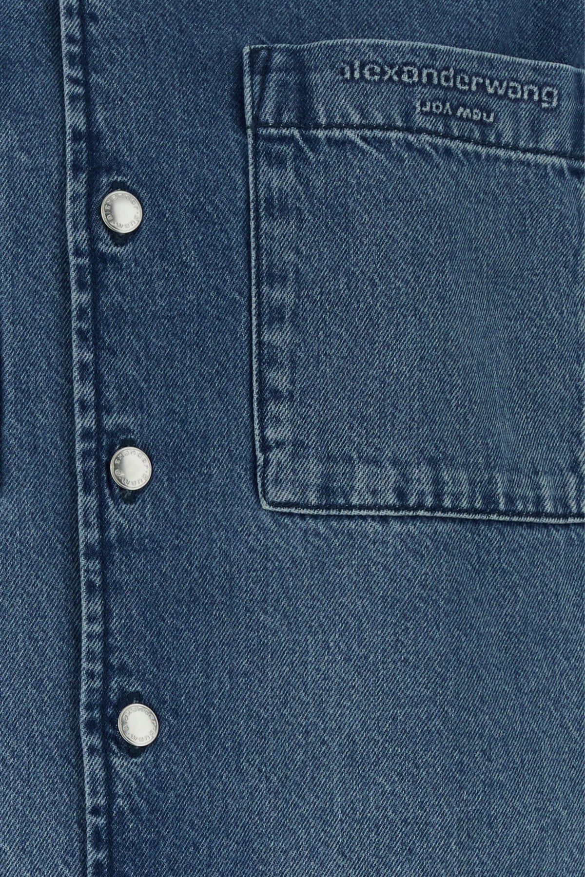 Shirt dress realized in stonewashed pure cotton denim characterized by logo in relief on the chest.