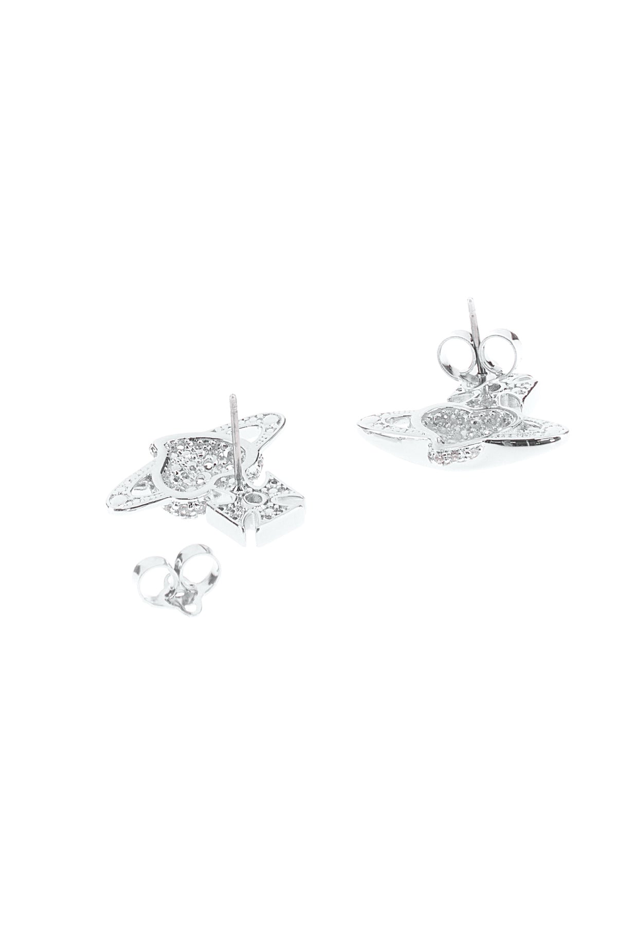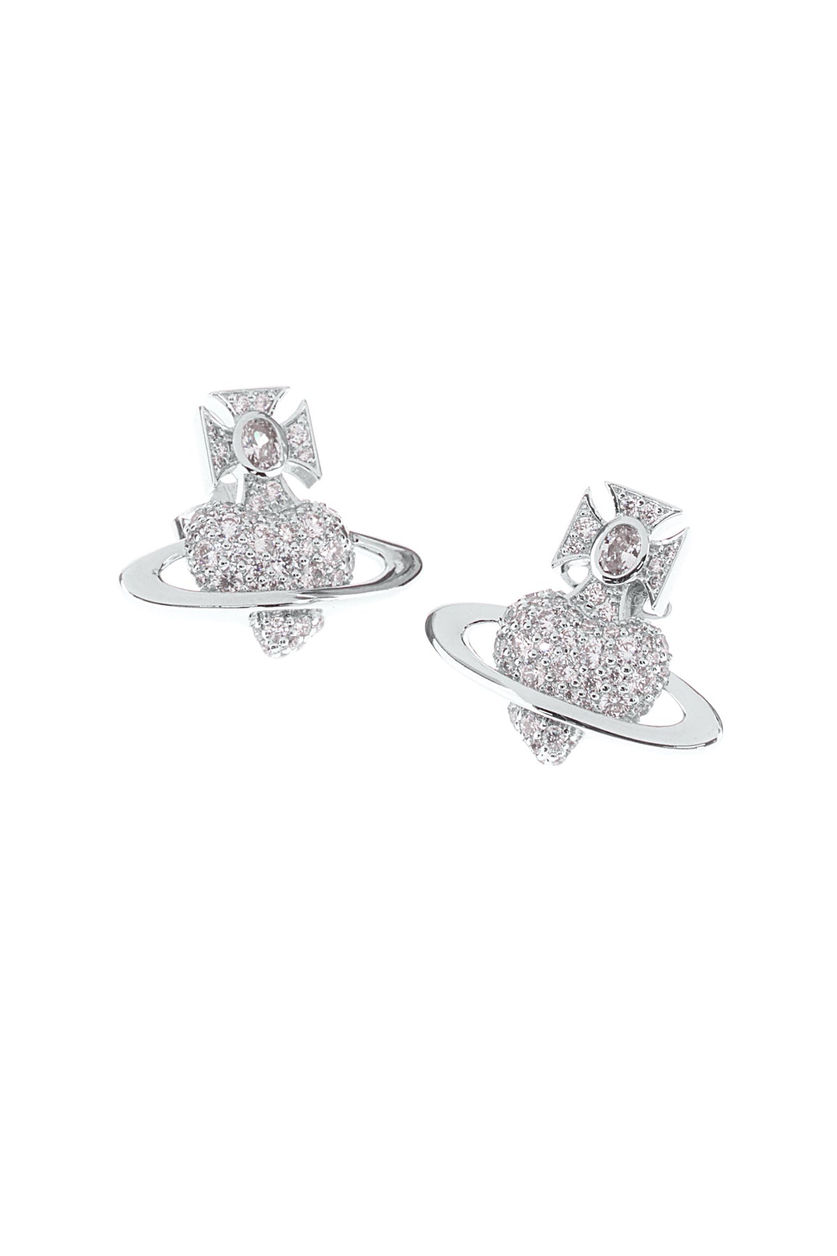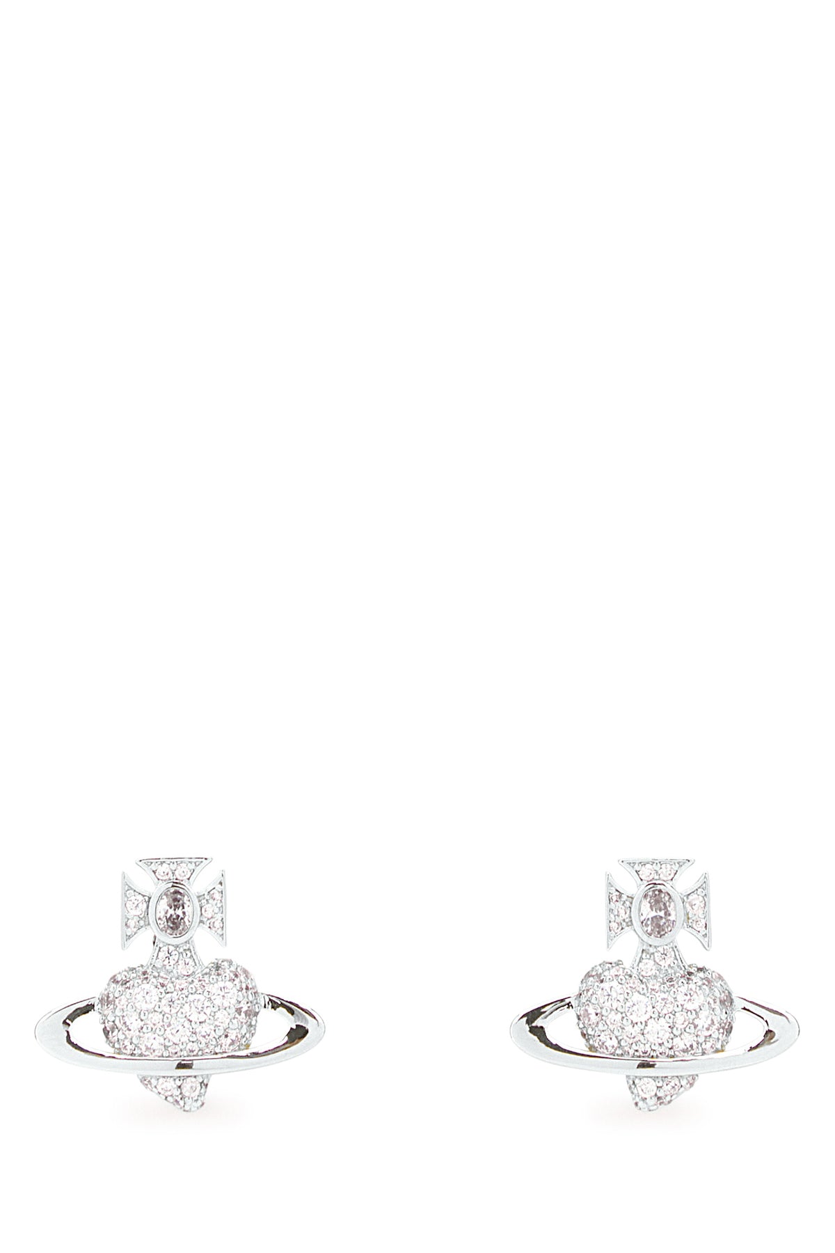 Earrings realized in silver-tone plated metal enriched by rhinestones on the entire surface.