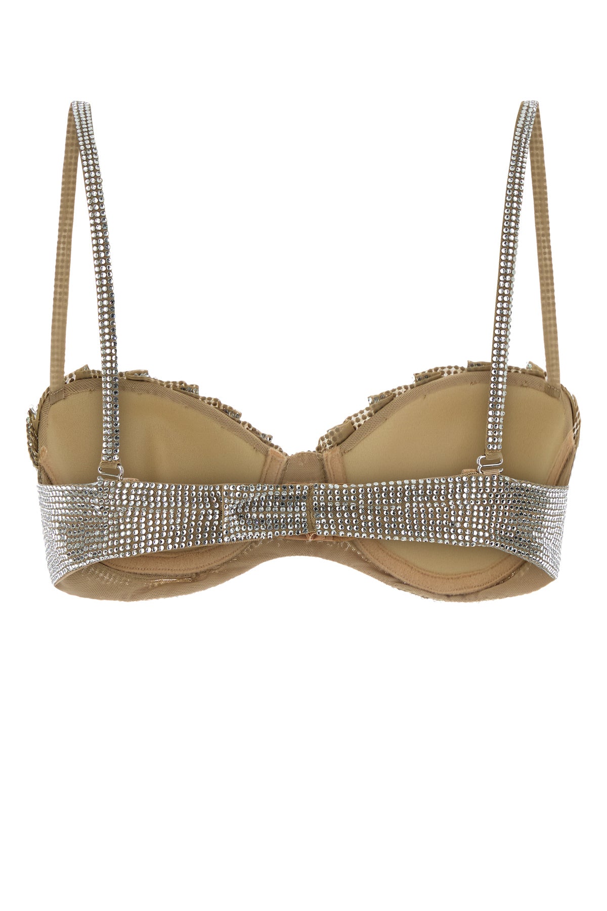 Underwire bra realized in stretch nylon entirely covered by rhinestones.