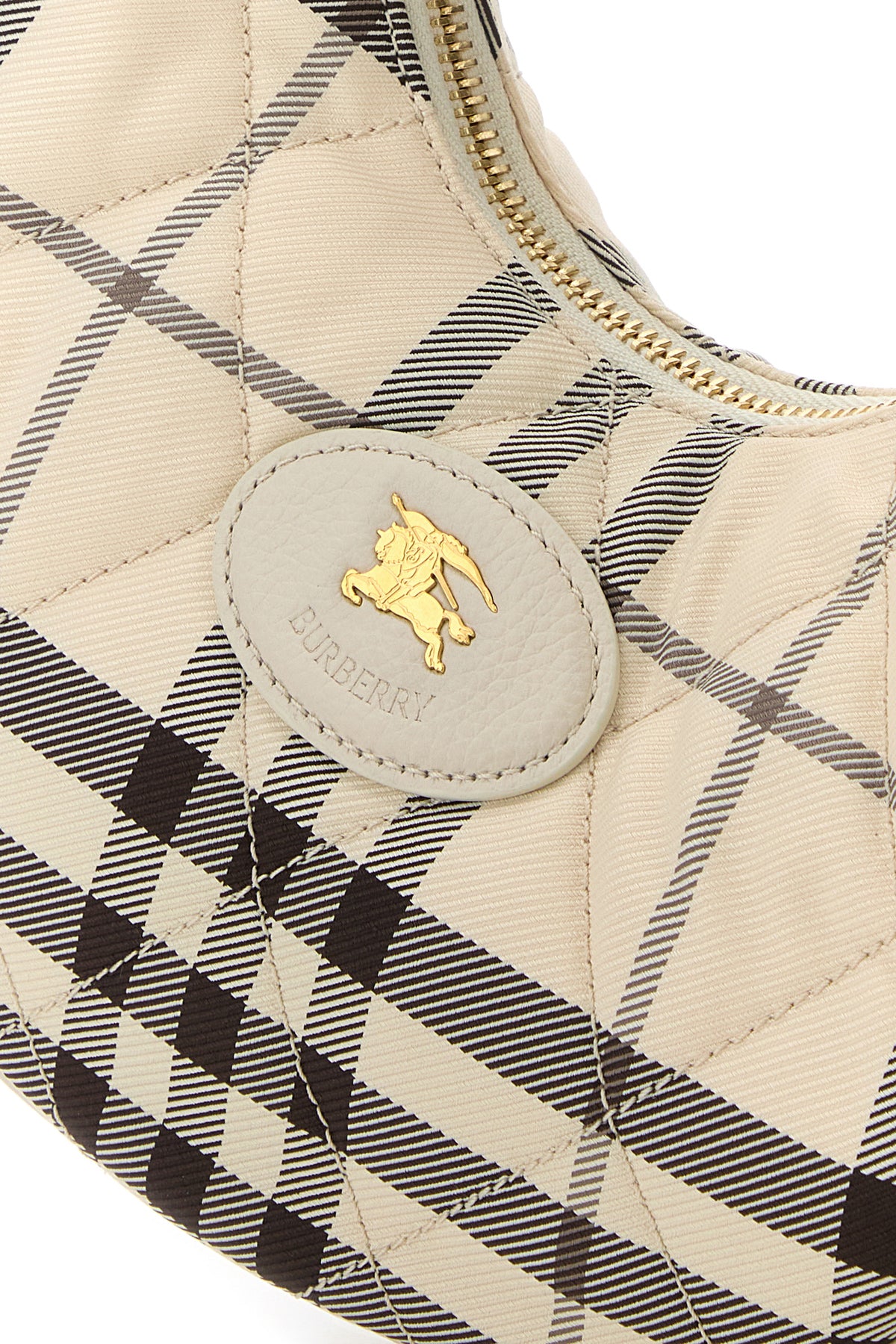 Crossbody bag realized in fabric characterized by Burberry Check embroidery on the entire surface enriched by Equestrian Knight patch at the front.