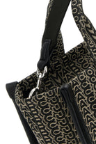 Shopping bag realized in canvas characterized by embroidered logo on the entire surface.