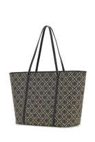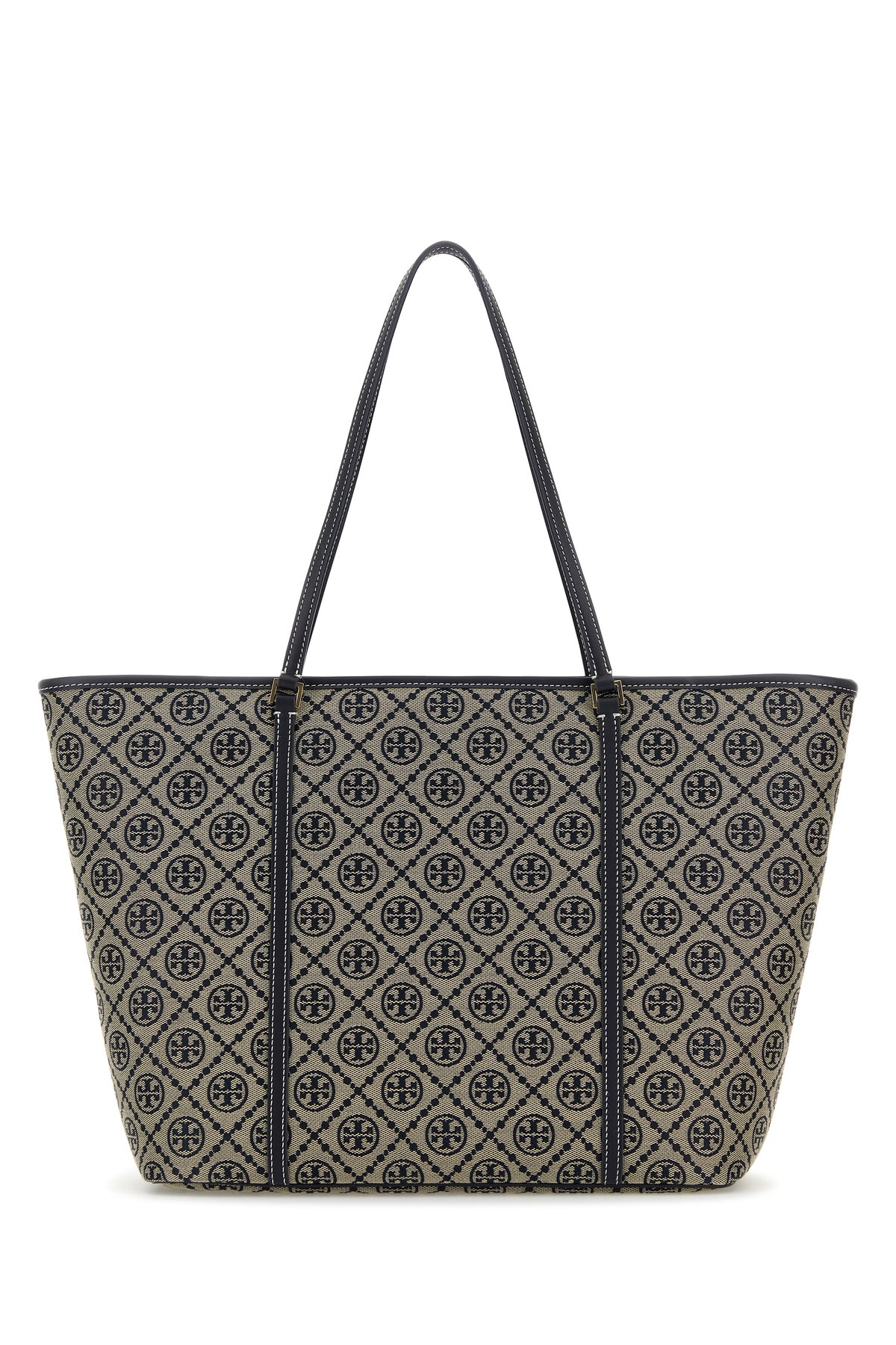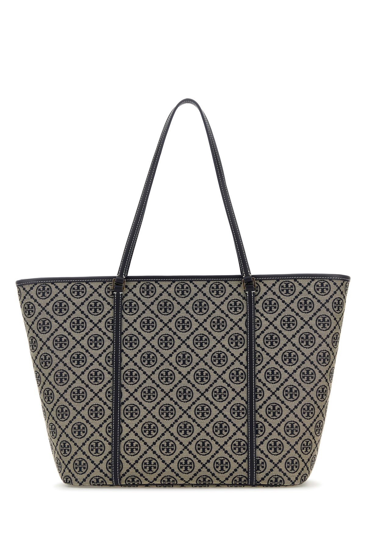 Shopping bag realized in canvas characterized by T Monogram embroidery on the entire surface.