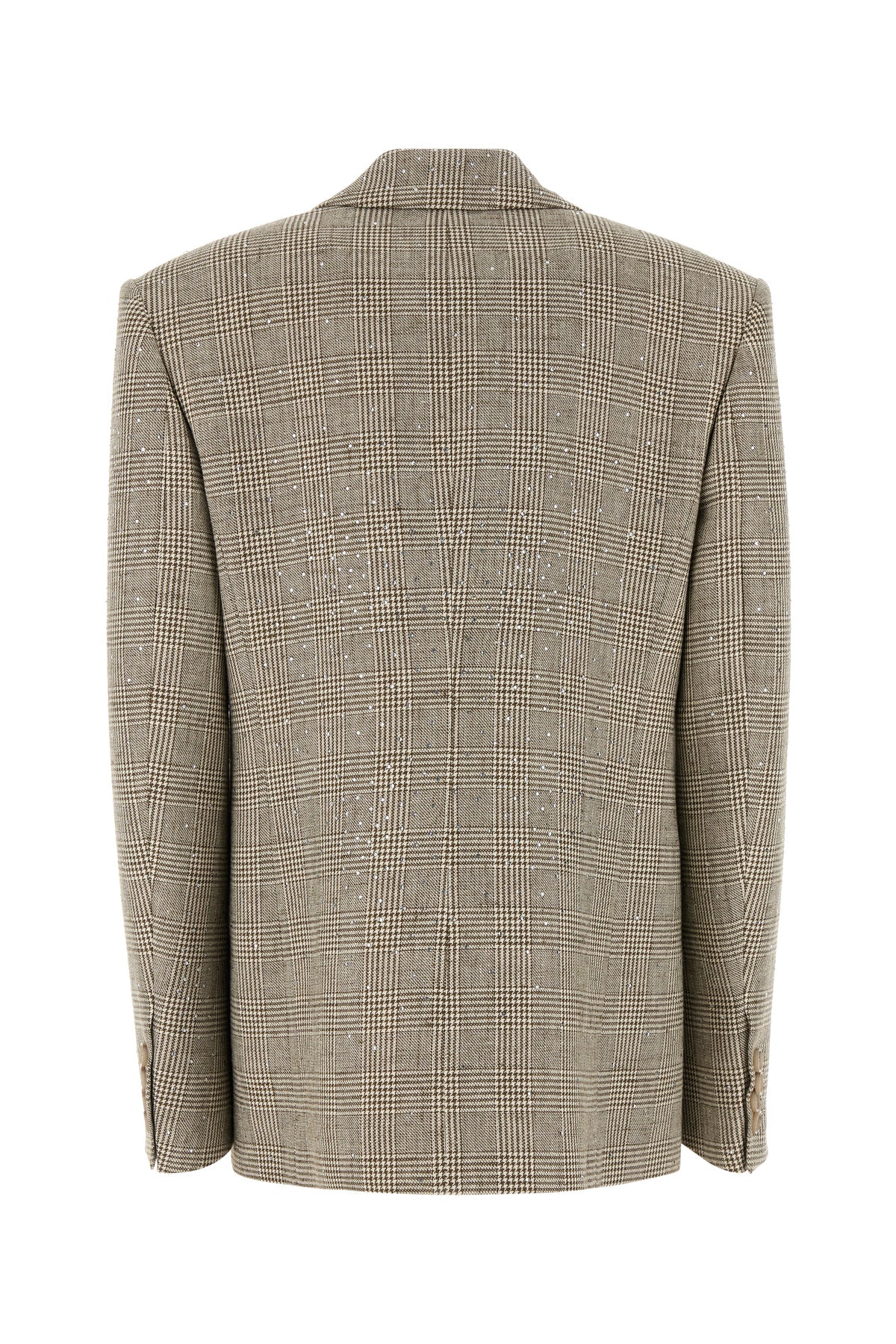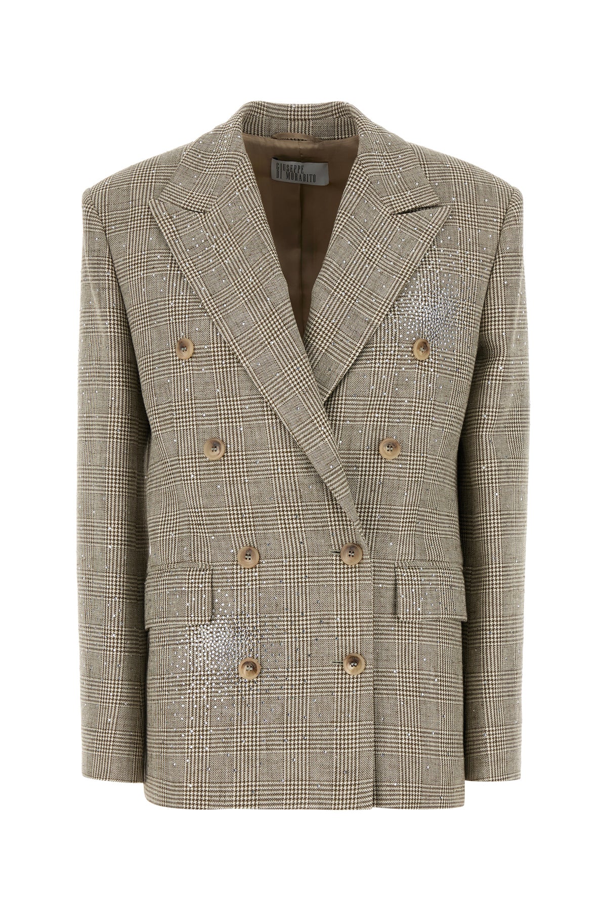 Blazer realized in cotton blend characterized by glencheck motif embroidery enriched by rhinestones on the entire surface.