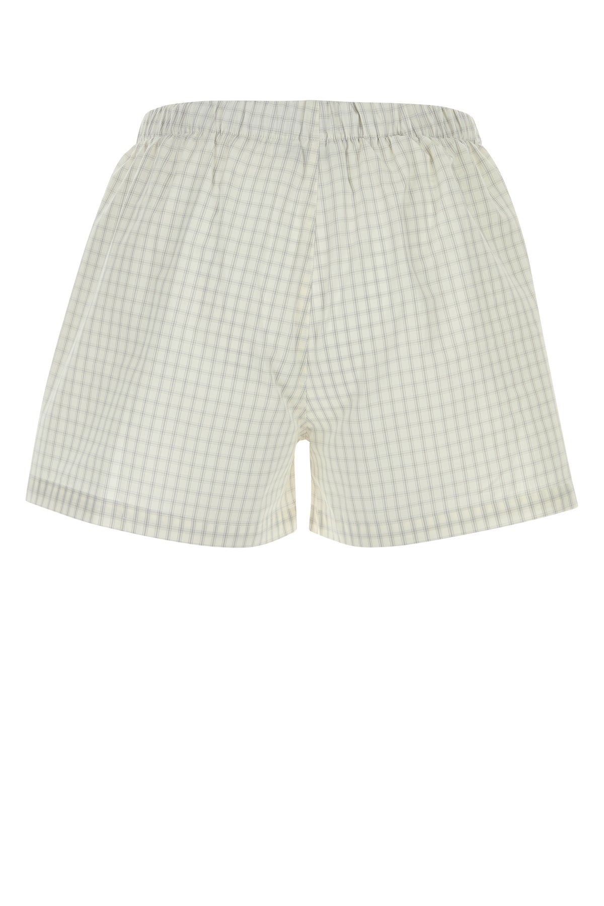 Pyjama shorts realized in pure organic cotton characterized by striped embroidery on the entire surface and logoed embroidery on the hemline.