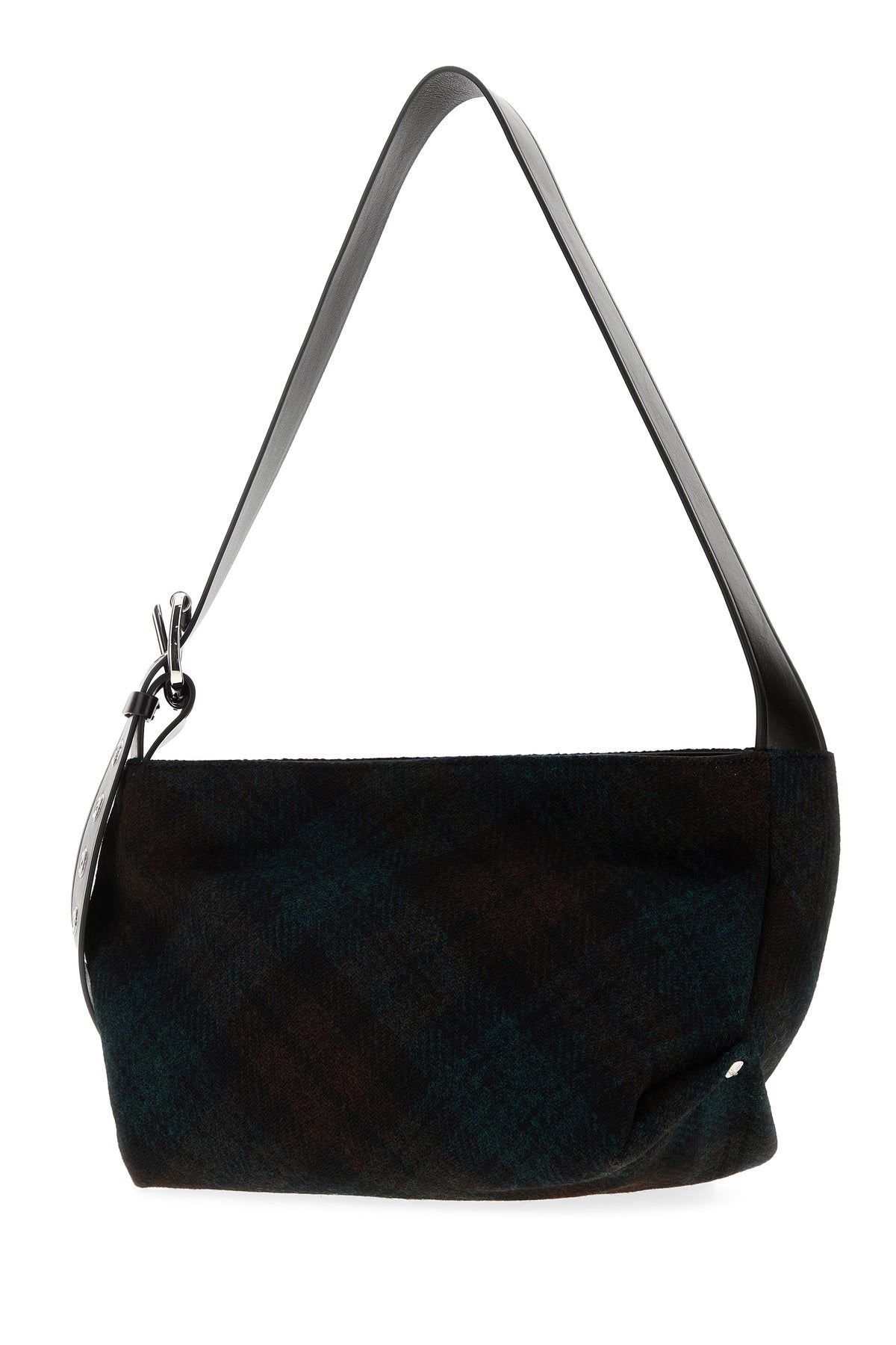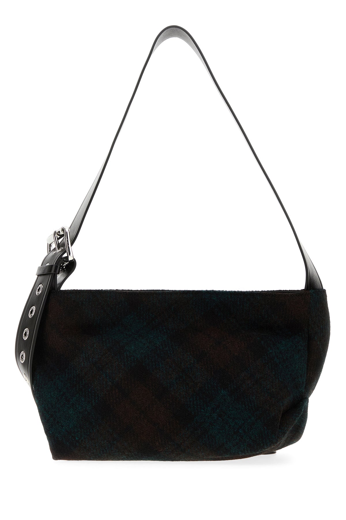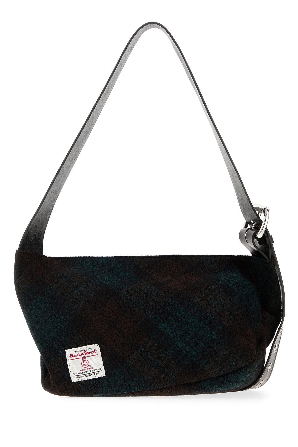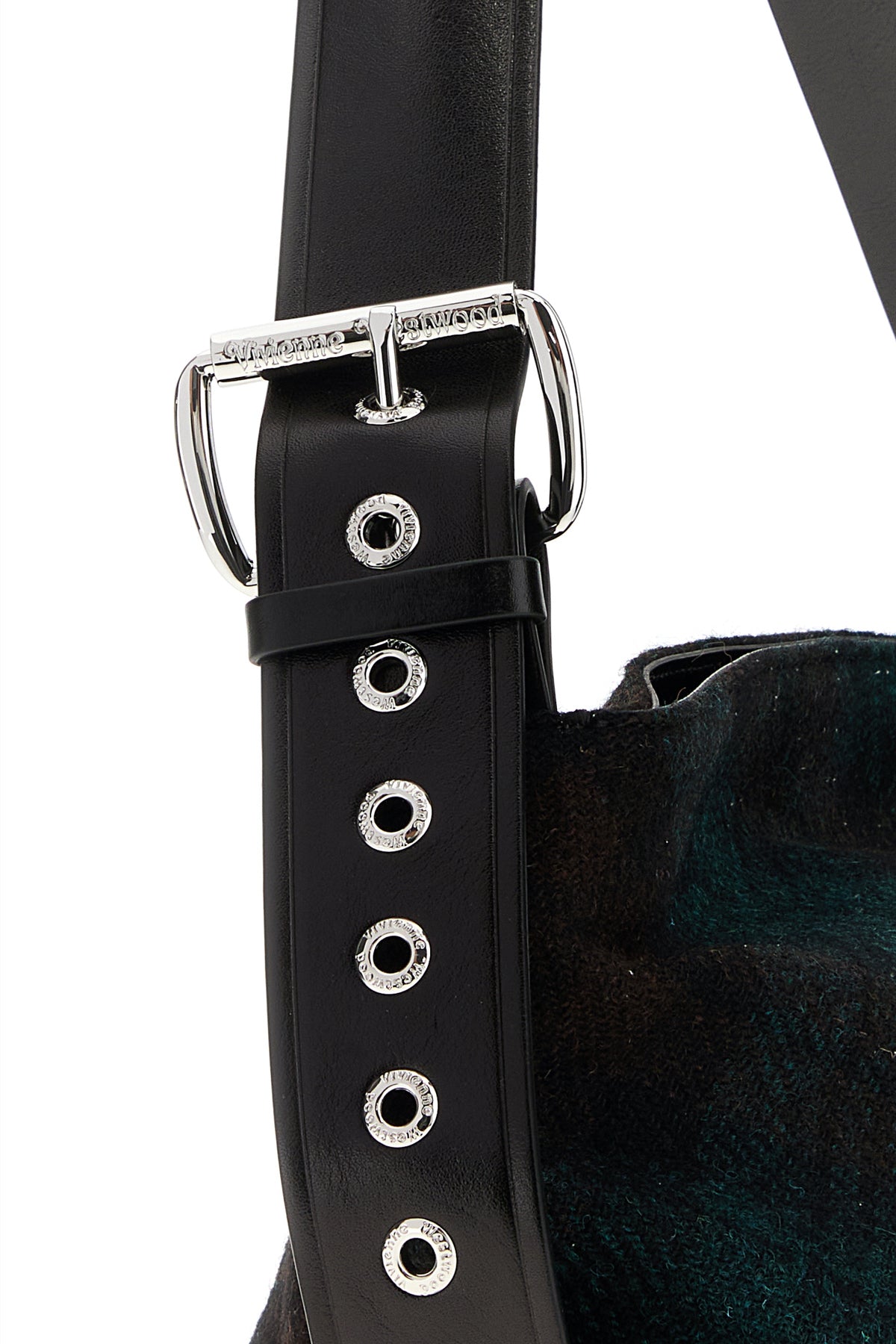 Crossbody bag realized in pure virgin wool characterized by checked embroidery on the entire surface and Orb print on the adjustable leather shoulder strap.