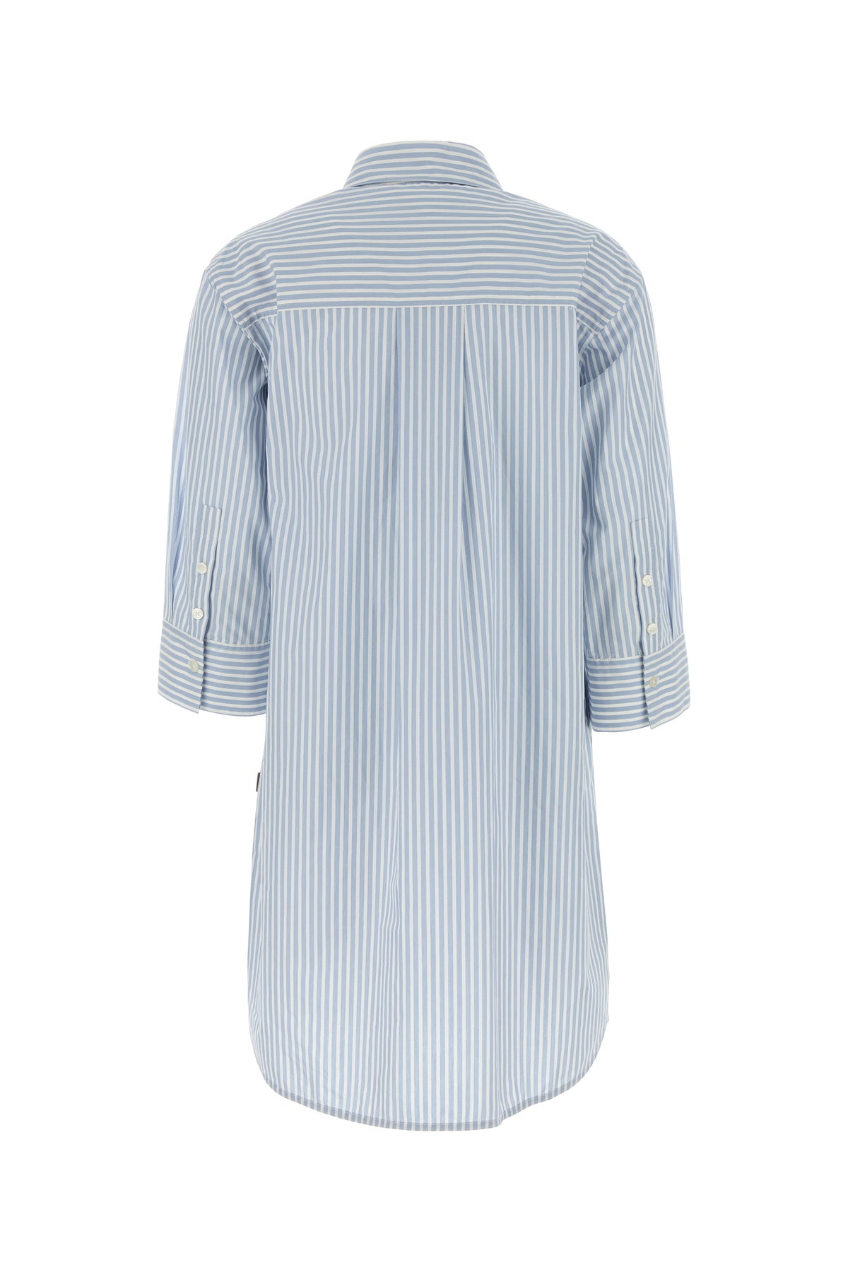 Shirt dress realized in pure cotton poplin characterized by striped embroidery on the entire surface enriched by logoed label on the side.