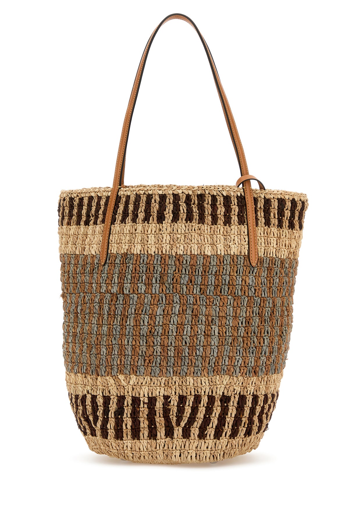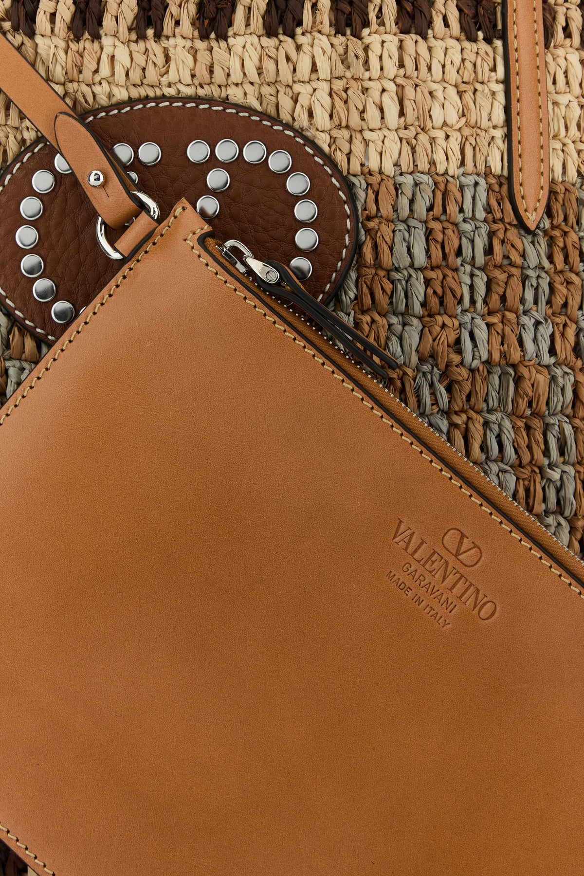 Shopping bag realized in raffia enriched by VLogo Signature patch at the front.