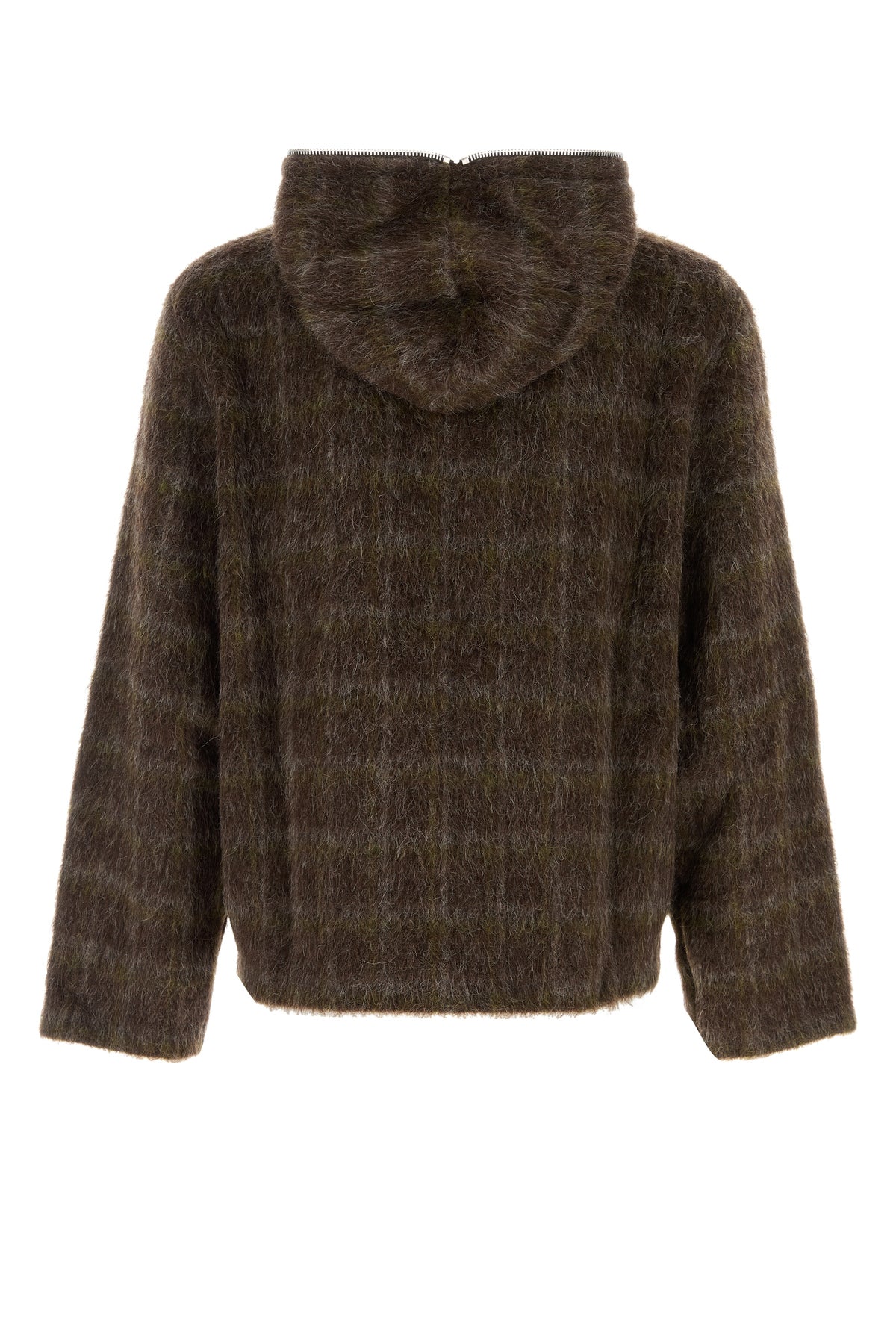 Cardigan realized in wool blend characterized by tartan motif embroidery on the entire surface.