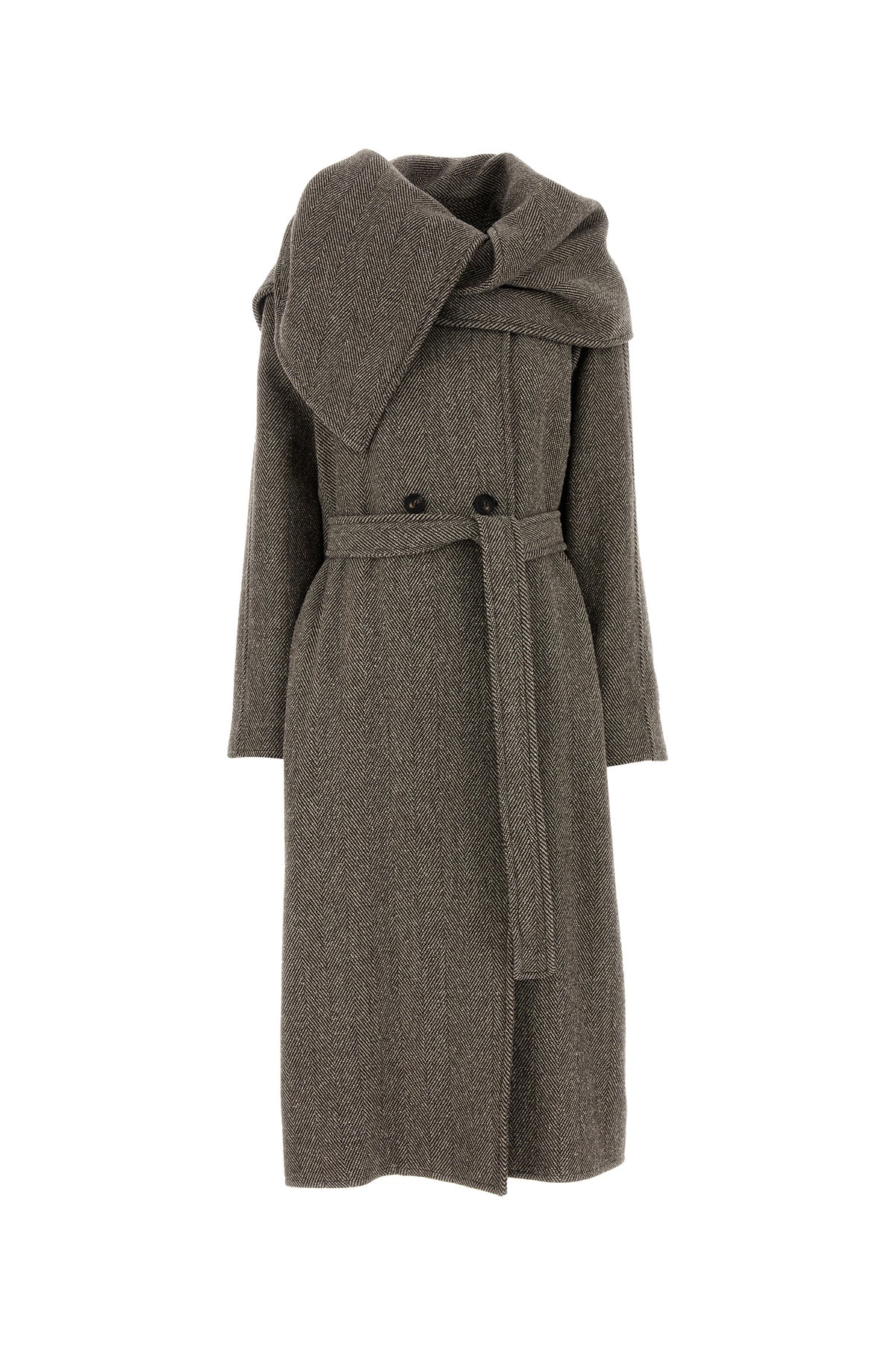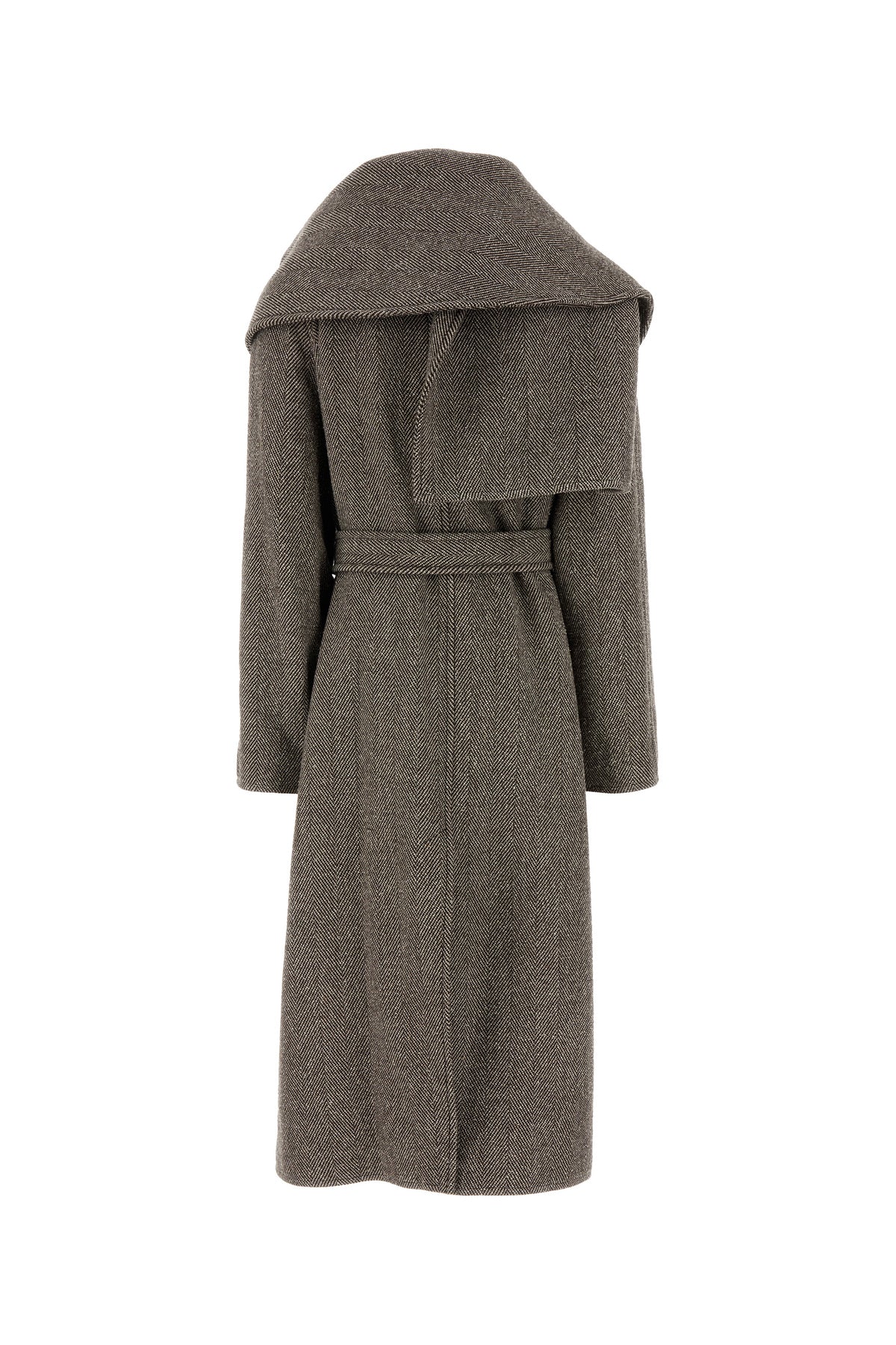 Coat realized in virgin wool and cotton characterized by chevron motif on the entire surface enriched by fabric insert at the top.