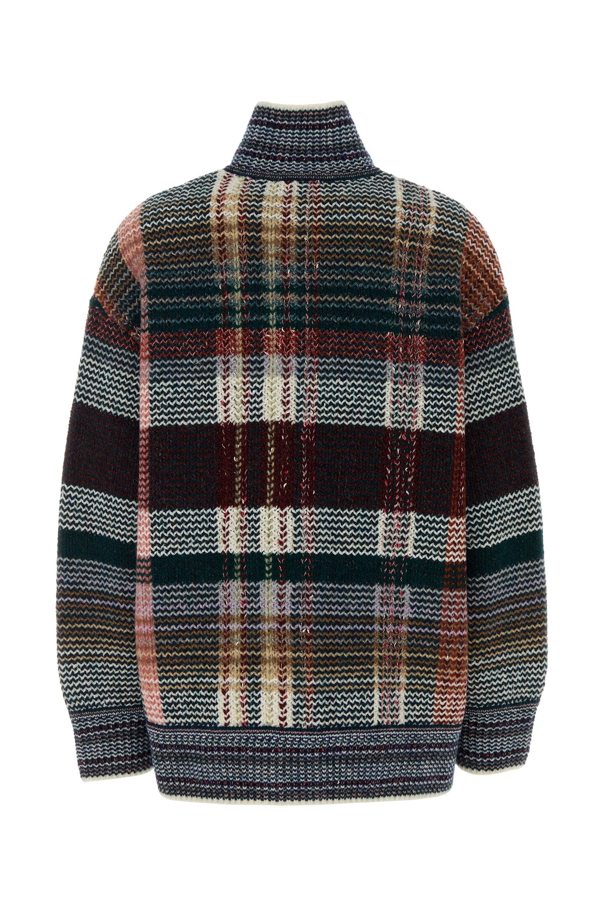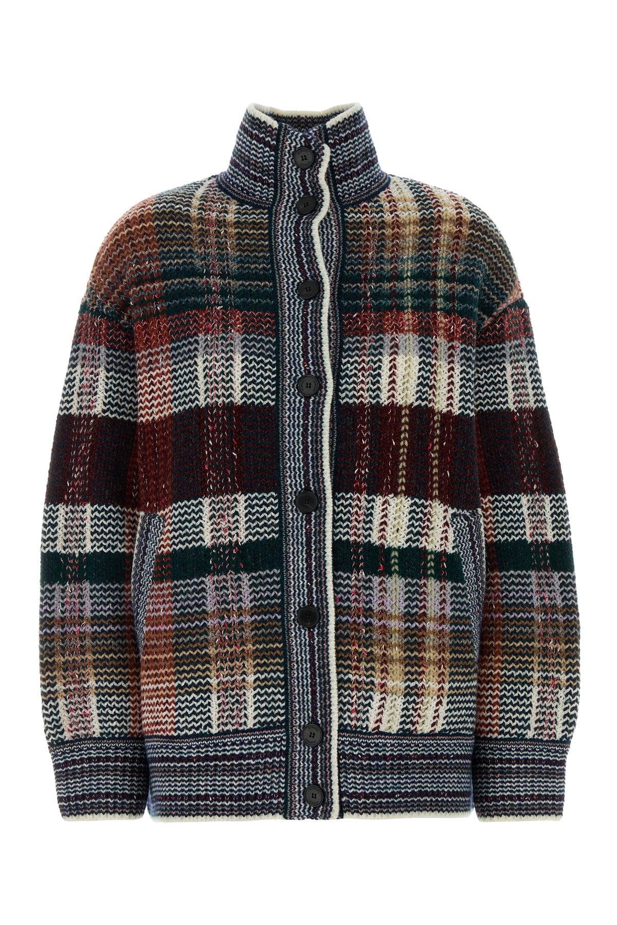 Oversize cardigan realized in wool blend characterized by checked embroidery on the entire surface.