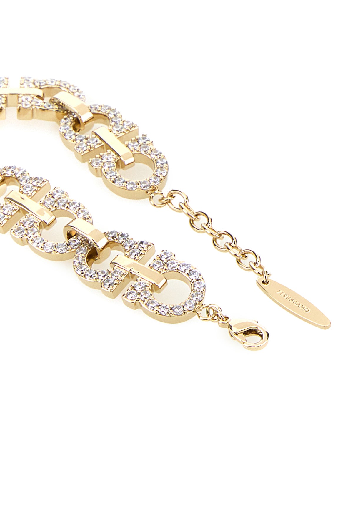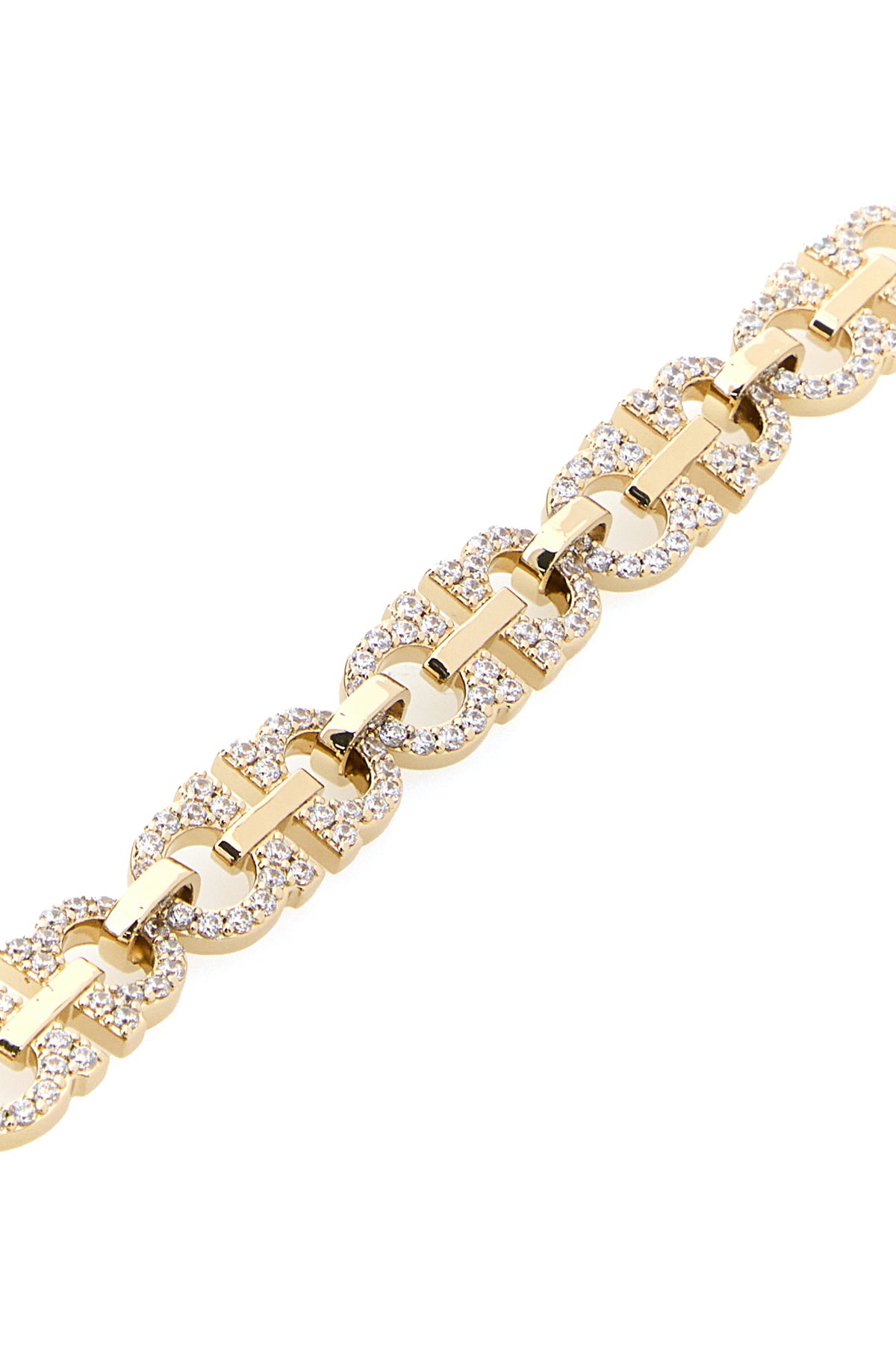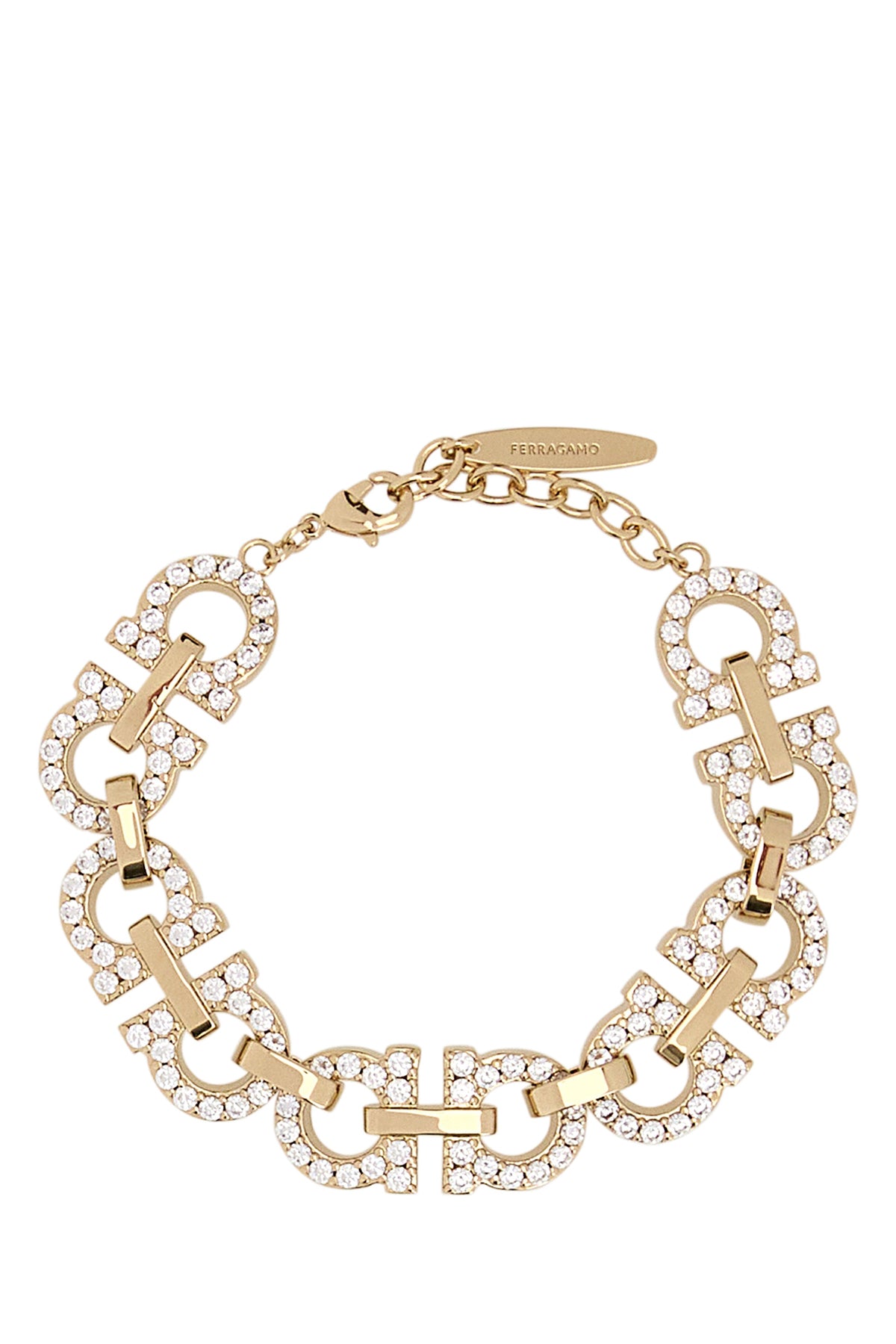 Bracelet realized in gold-tone pleated metal entirely covered by rhinestones.