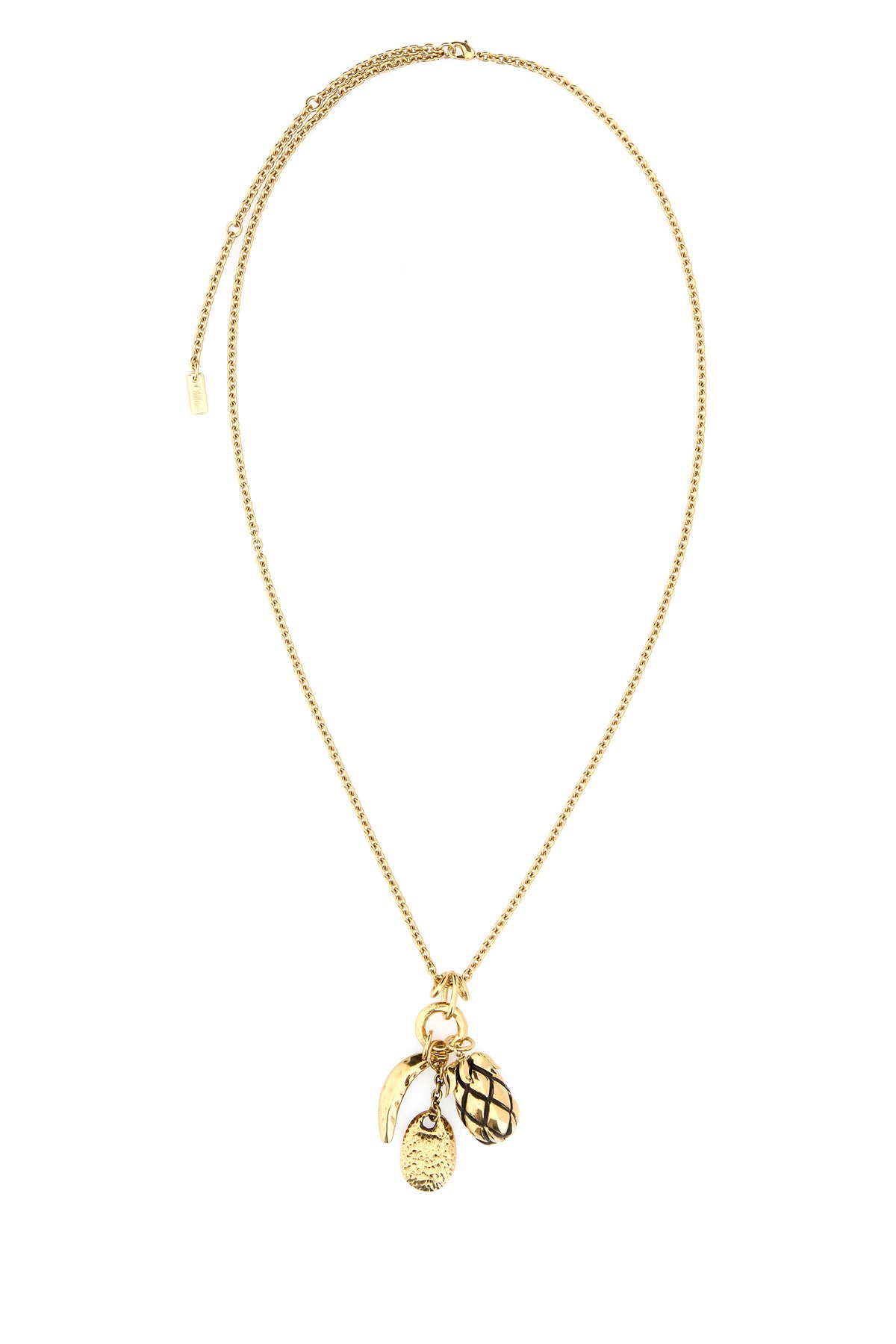 Necklace realized in gold-tone pleated metal enriched by peculiar metal charm.