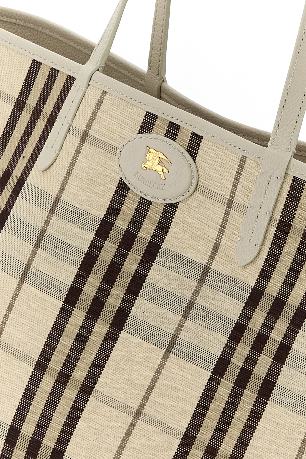 Reversible shopping bag realized in pebble leather enriched by Equestrian Knight patch at the front.