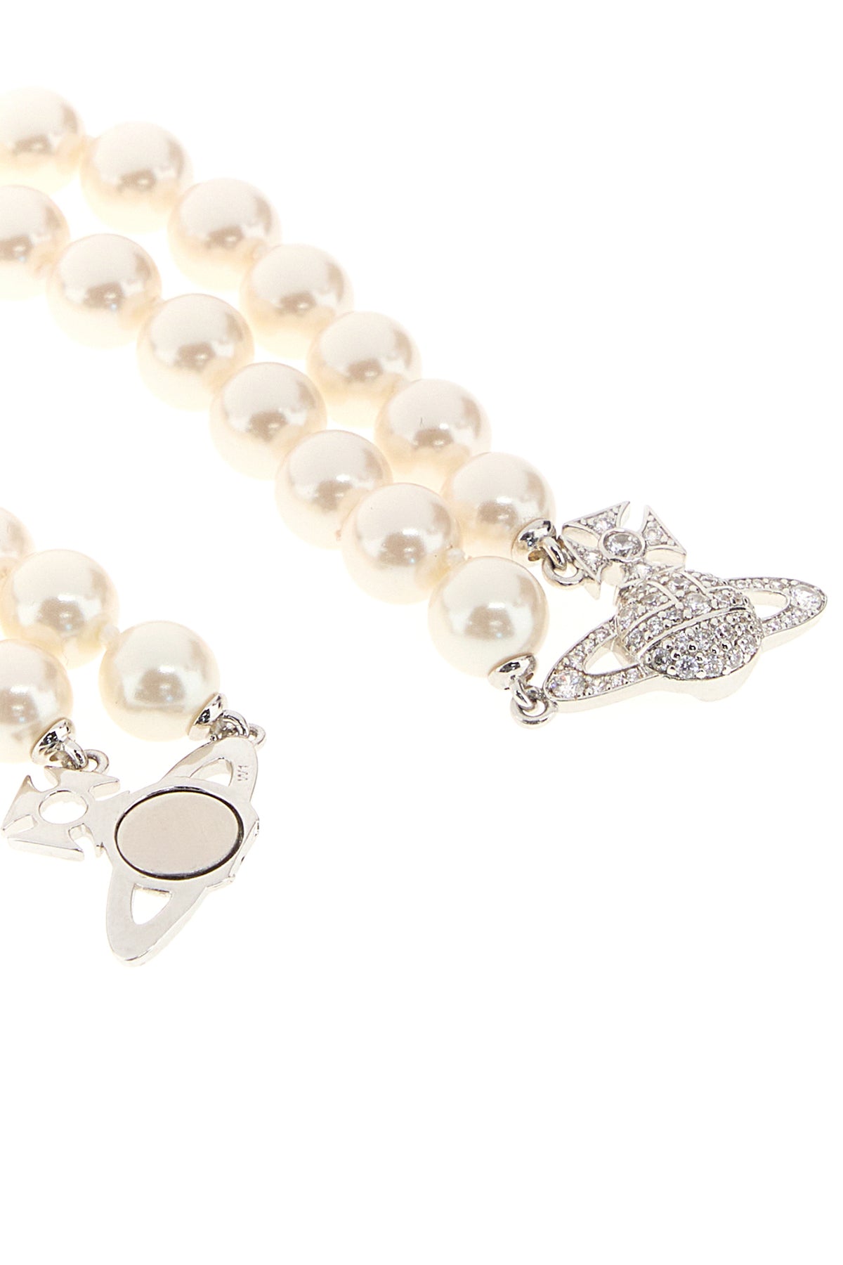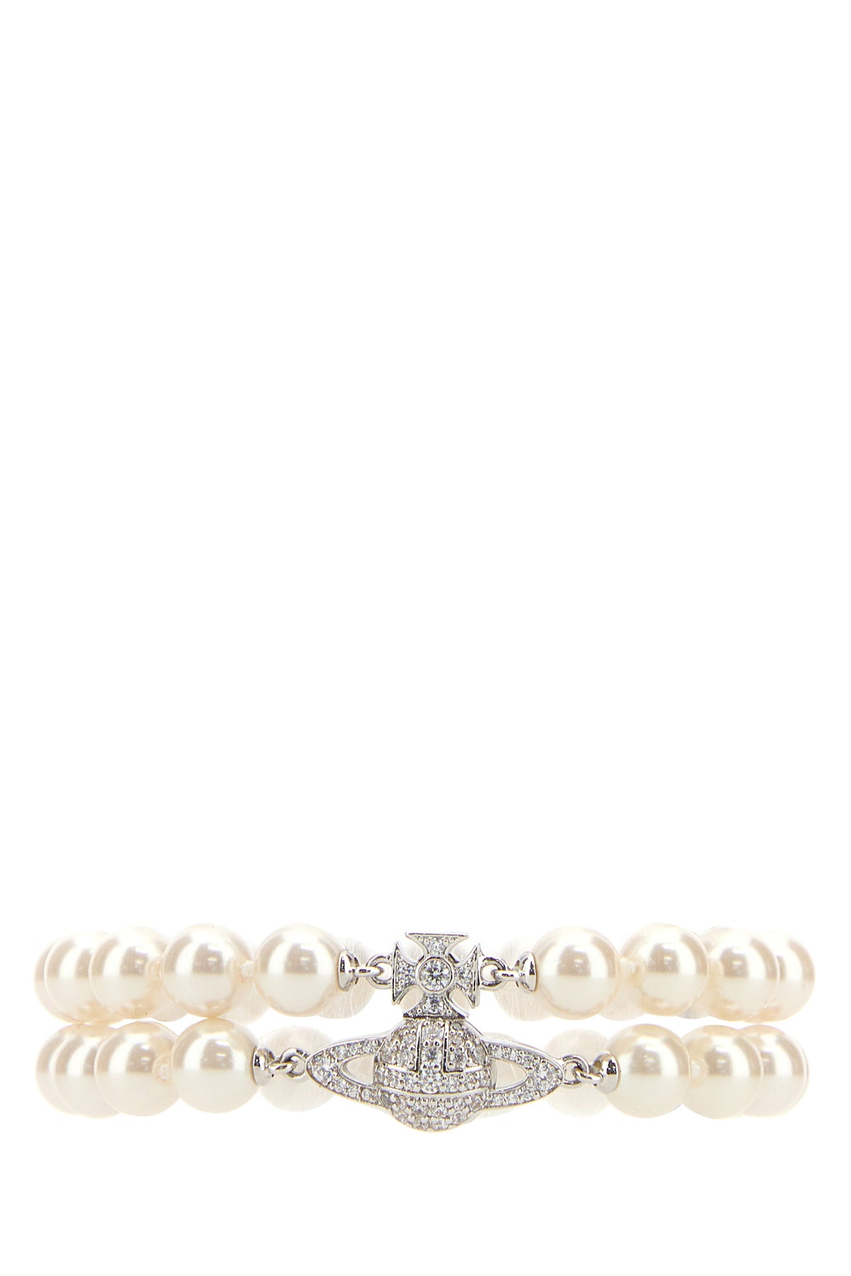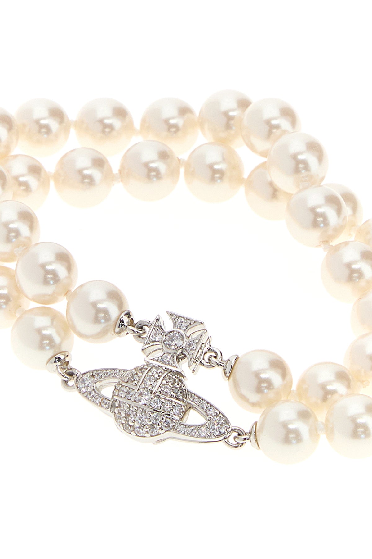 Bracelet realized in pearls enriched by Orb charm with rhinestones.