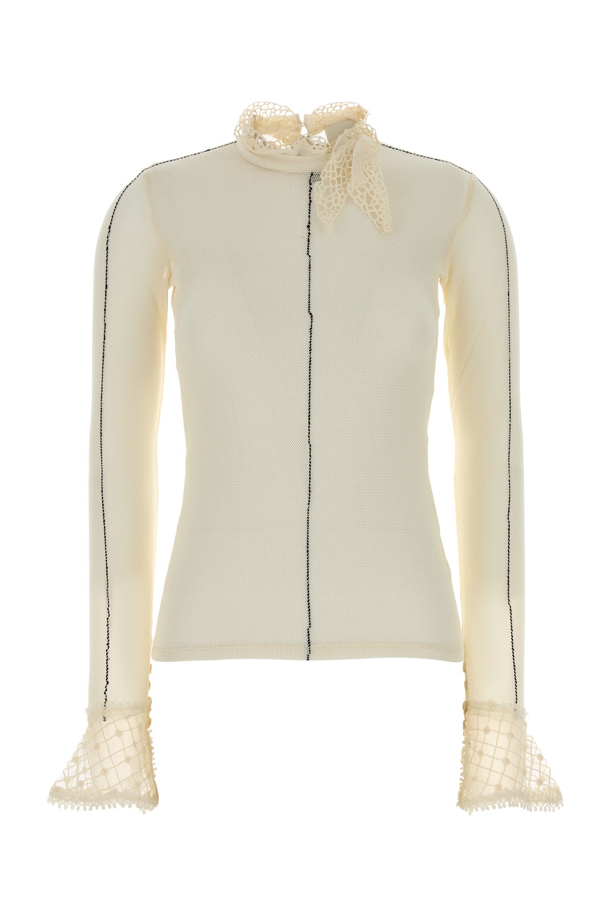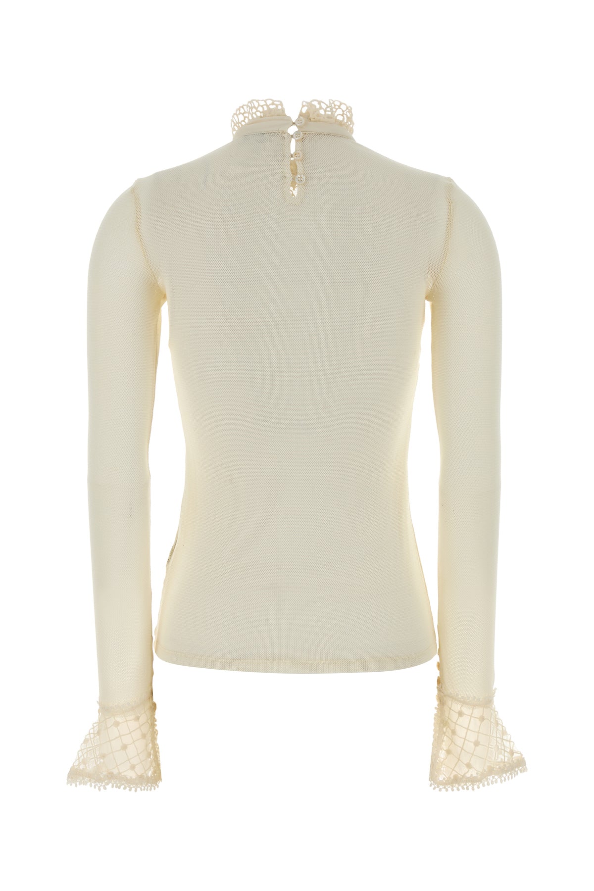 Top realized in crochet with lace insert on the neckline and on the cuffs.