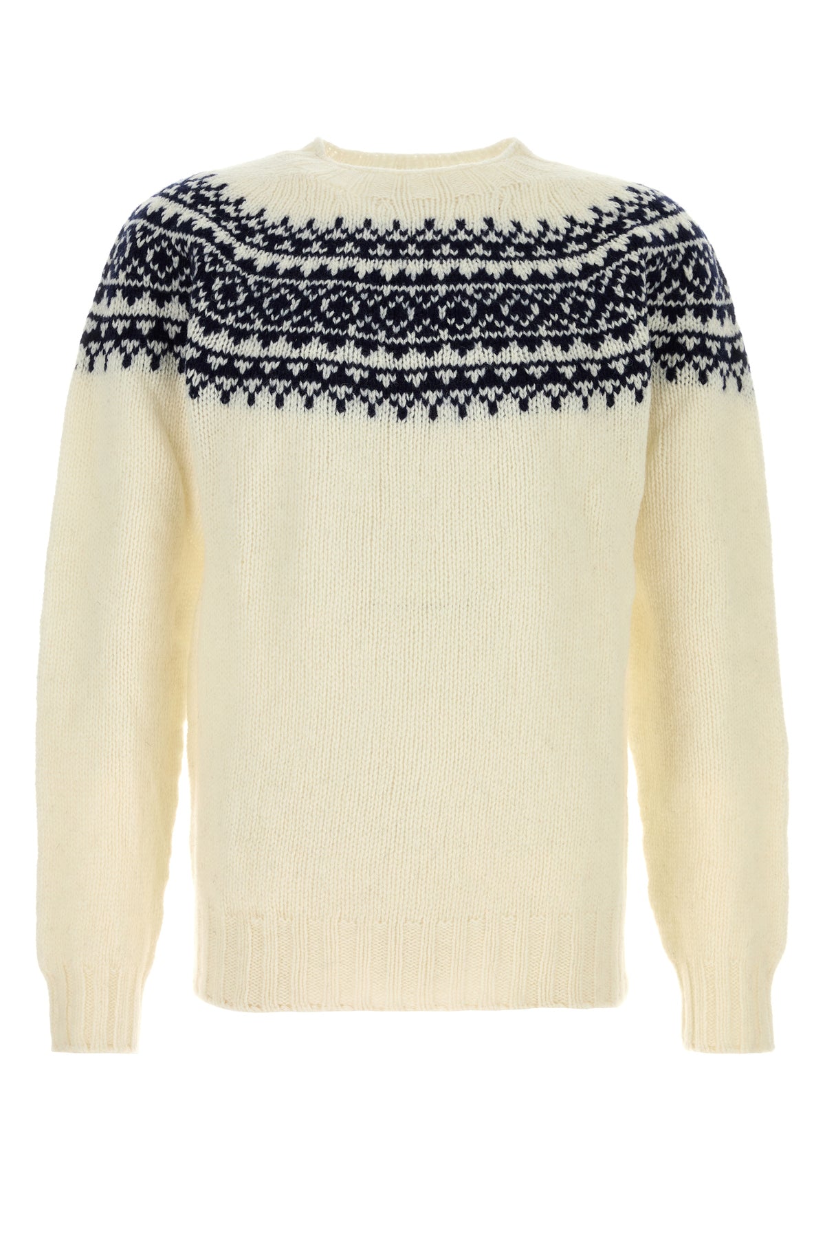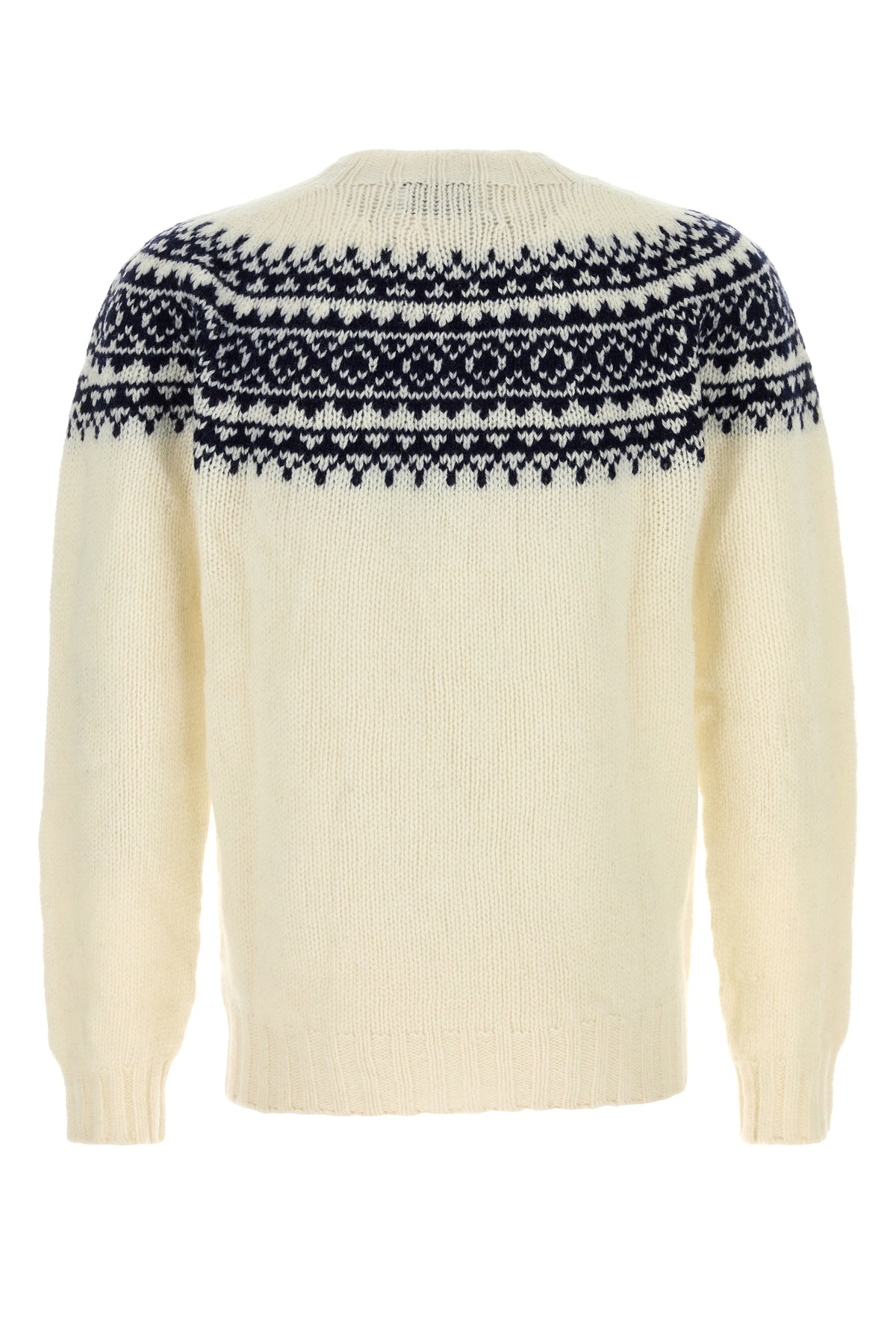 Maglione realizzato in pura lana caratterizzata da particolare ricamo sulla parte superiore.