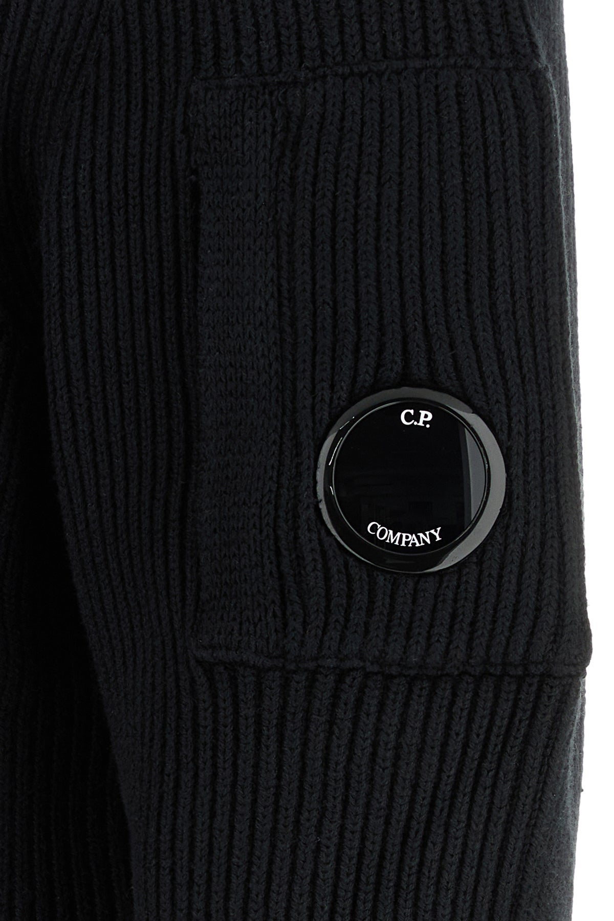 Sweater realized in cotton blend enriched by logoed patch on the sleeve.