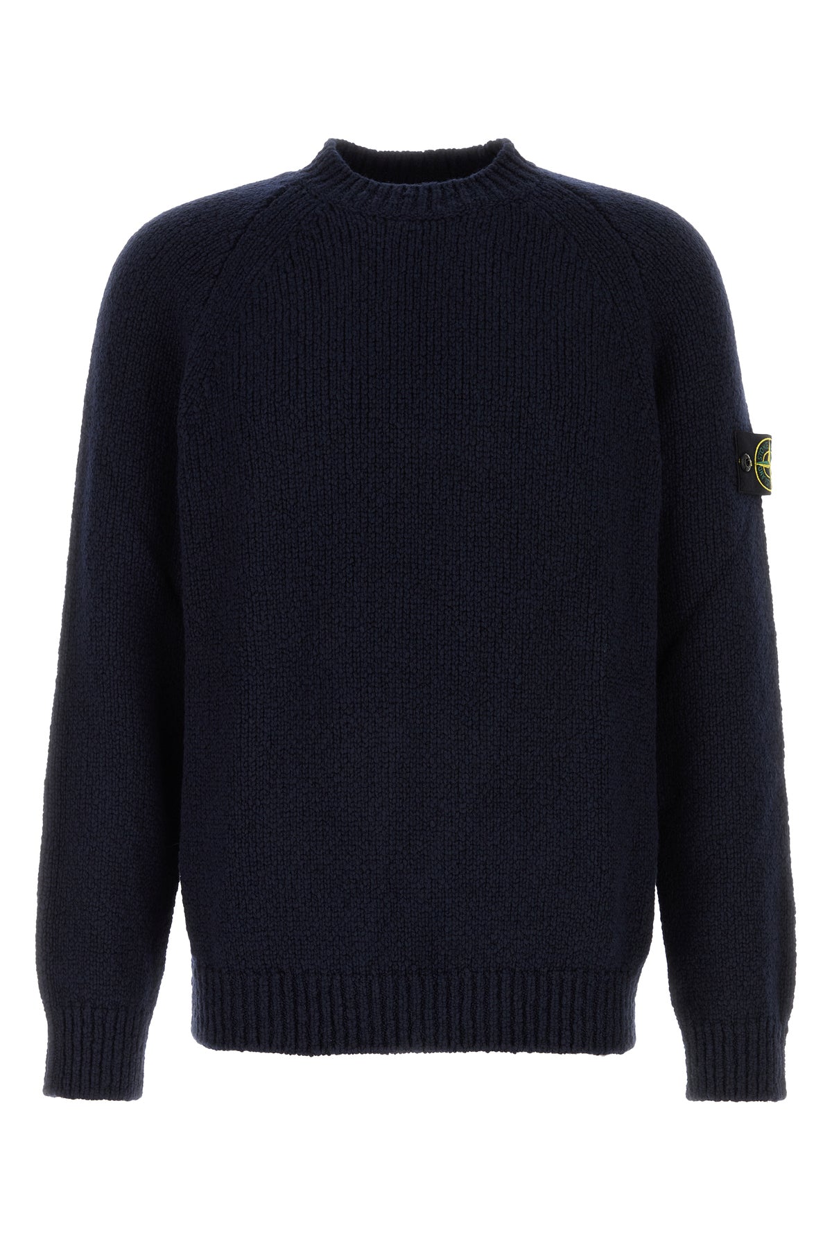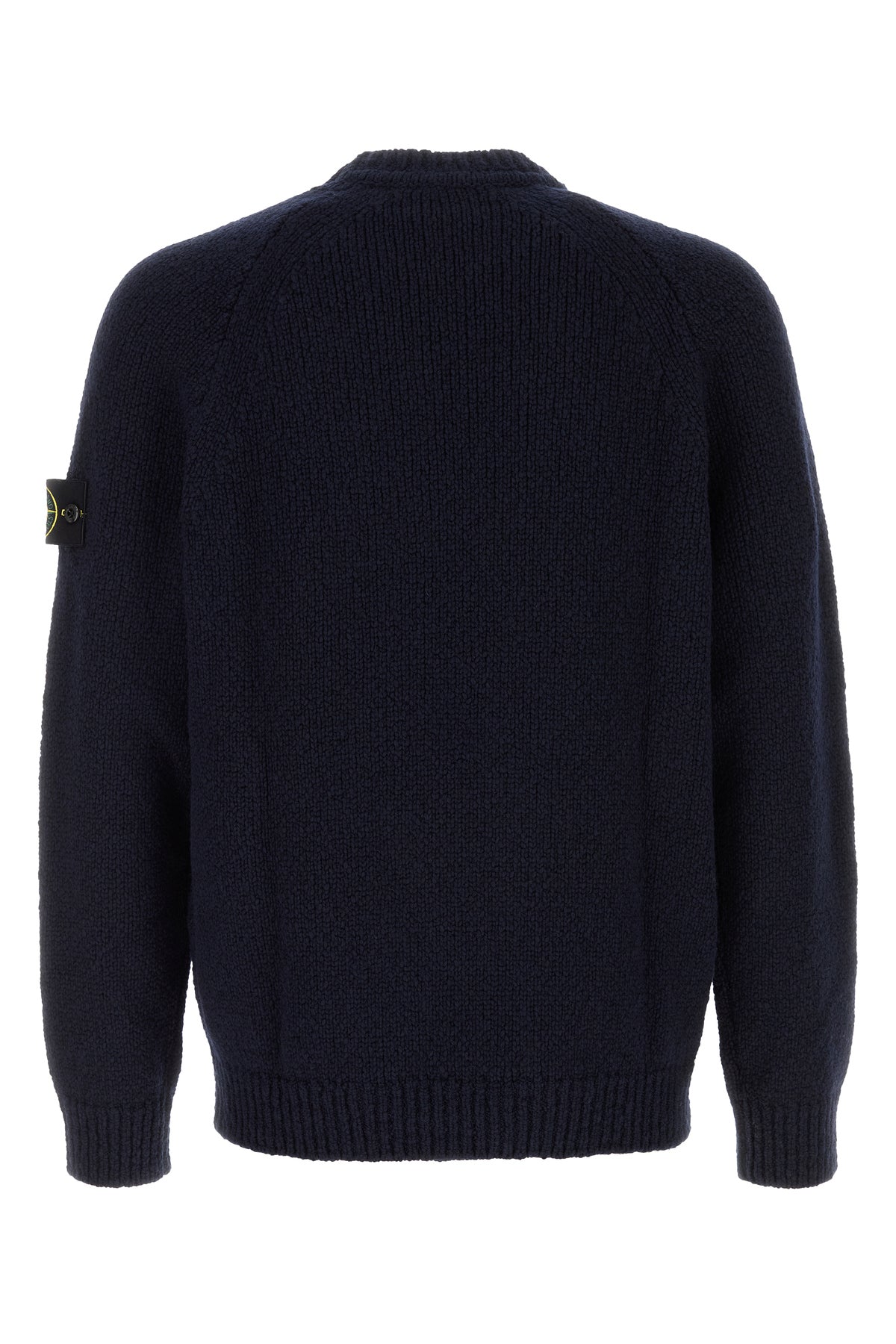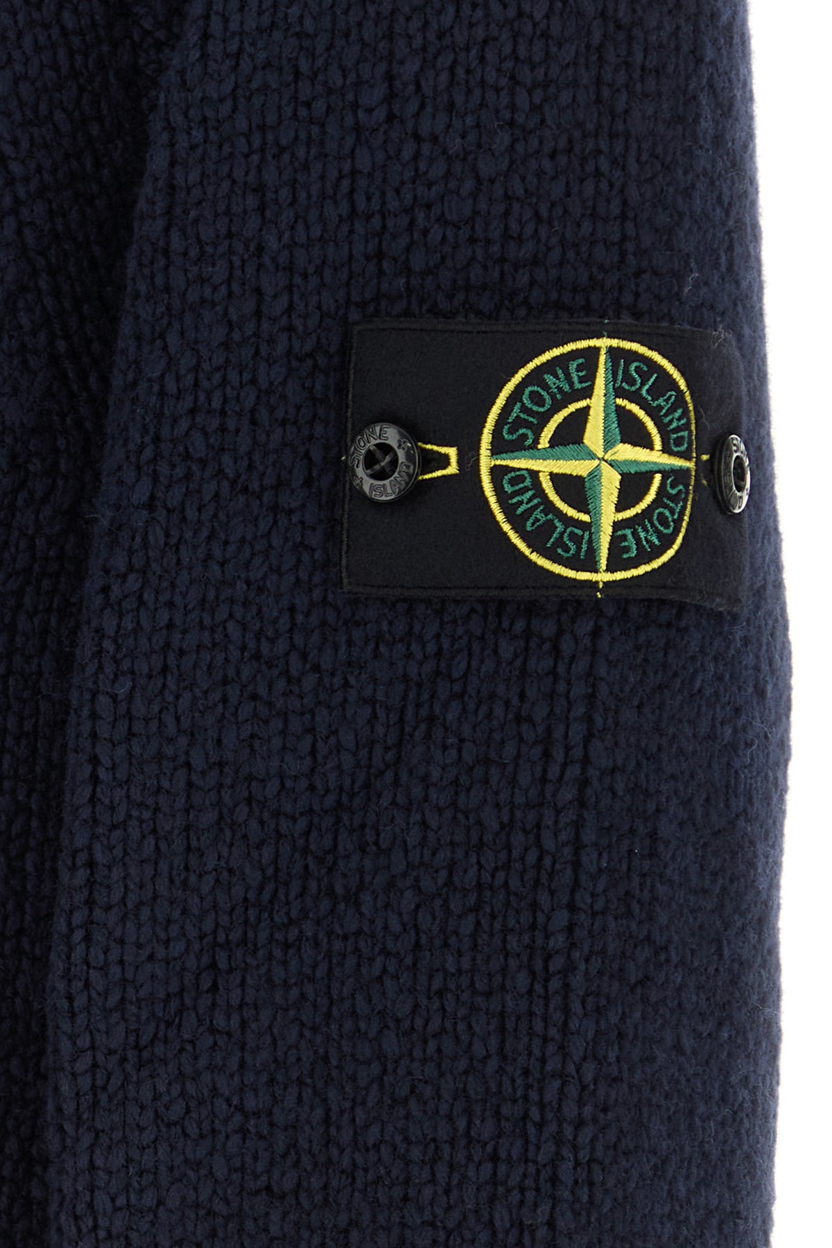 Sweater realized in virgin wool blend enriched by detachable logoed label on the sleeve.