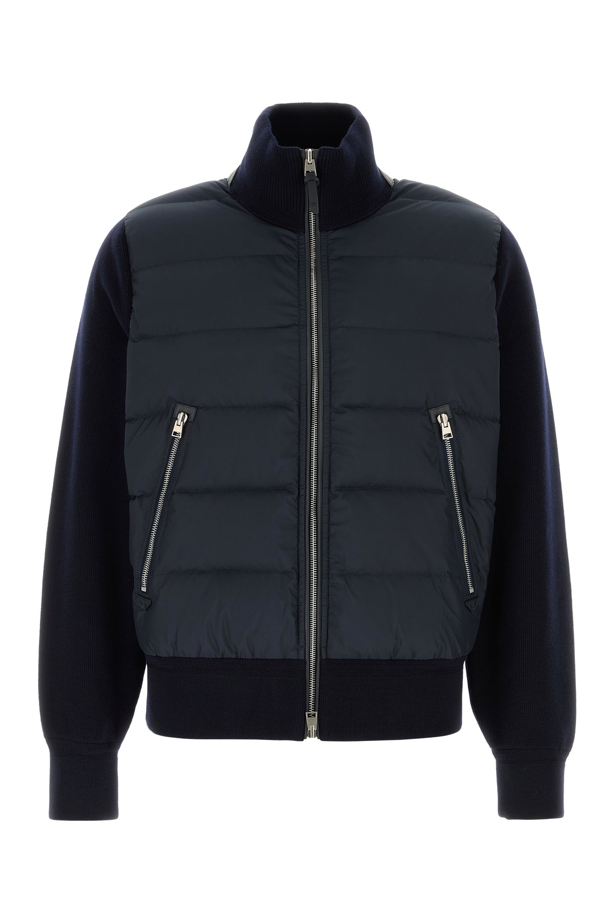 Jacket realized in pure wool with quilted polyester at the front.