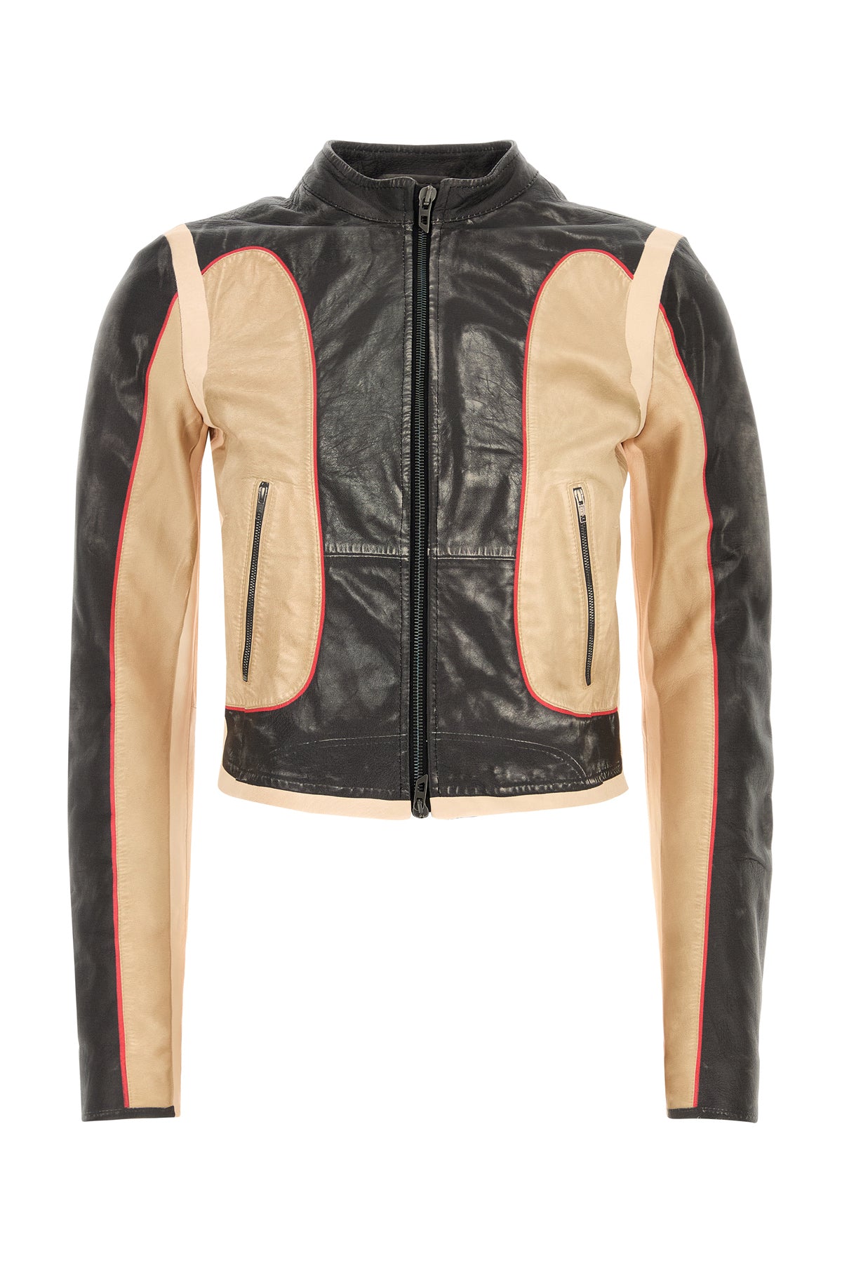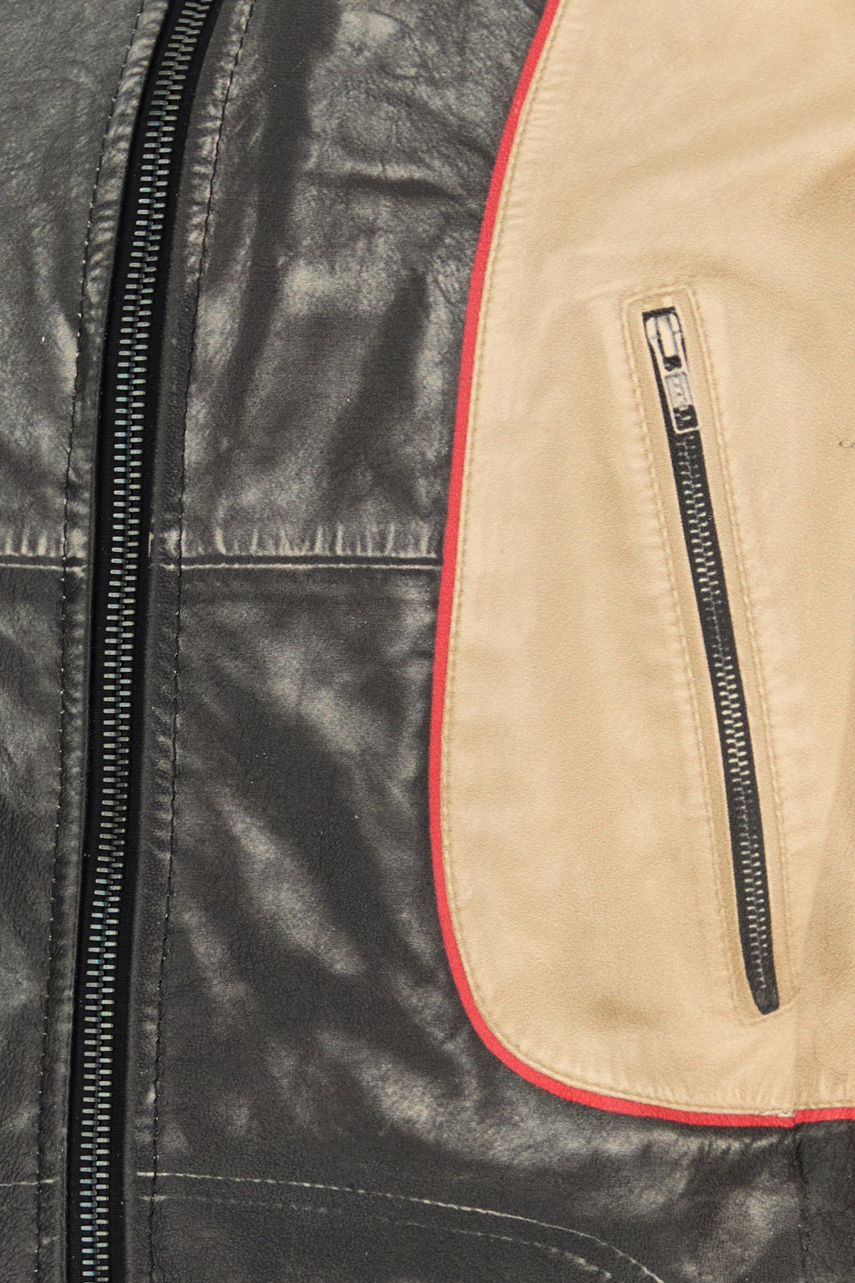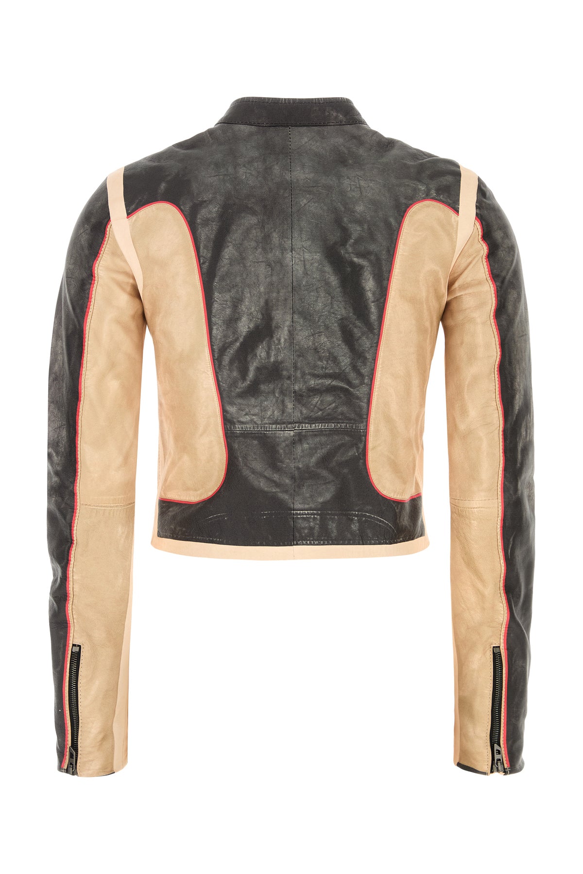 Jacket realized in creased-effect leather characterized by Trompe L’Oeil print on the entire surface.