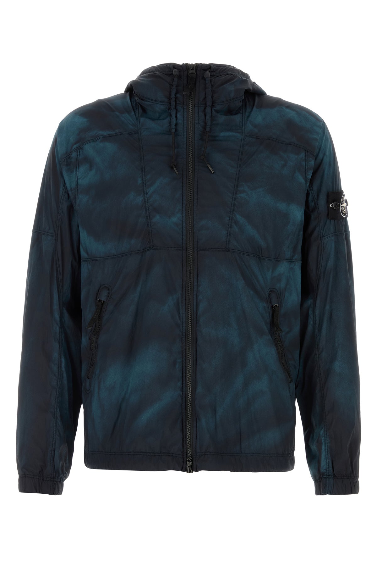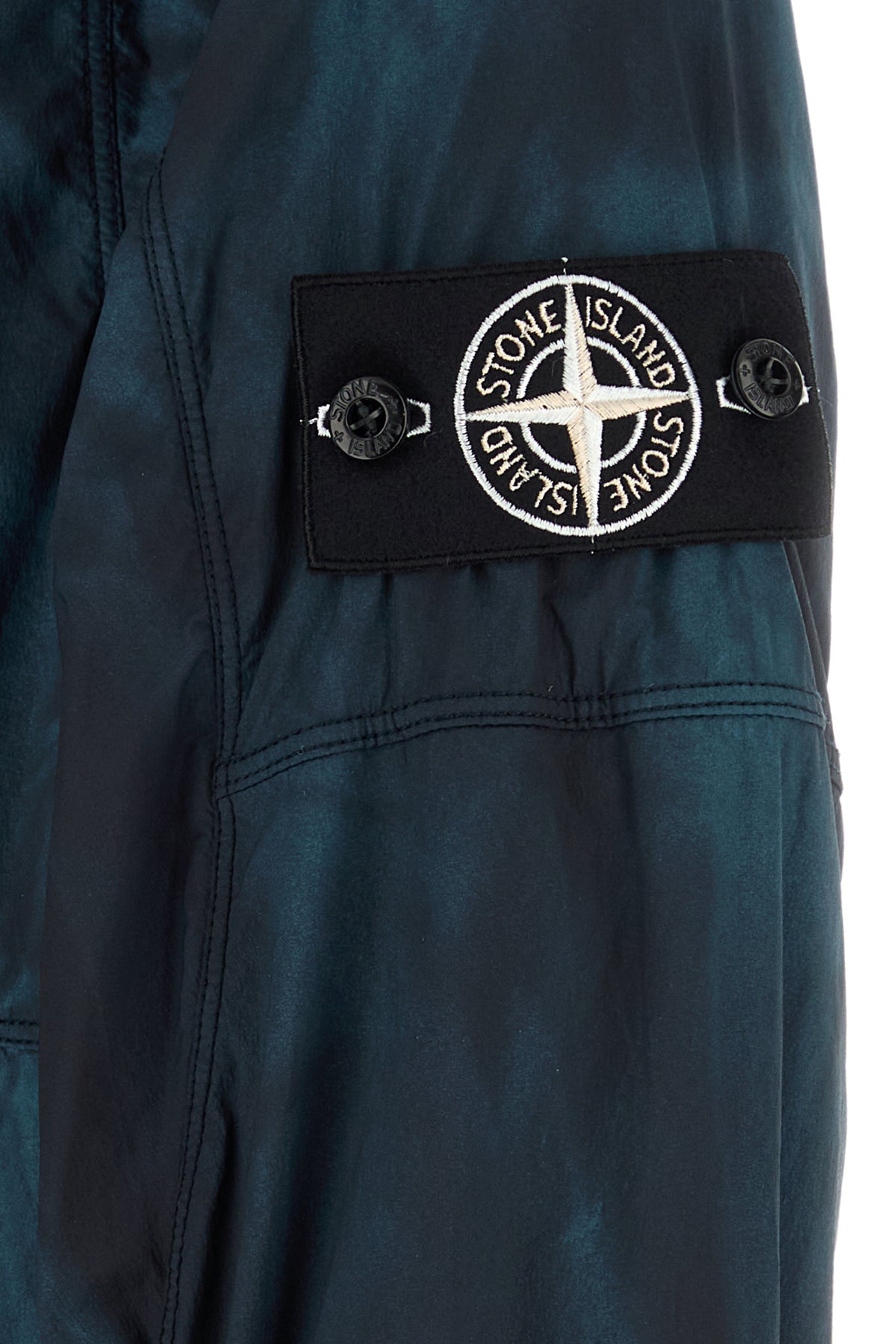 Jacket realized in stretch nylon enriched by detachable logoed label on the sleeve.