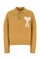Mustard stretch alpaca blend polo shirt