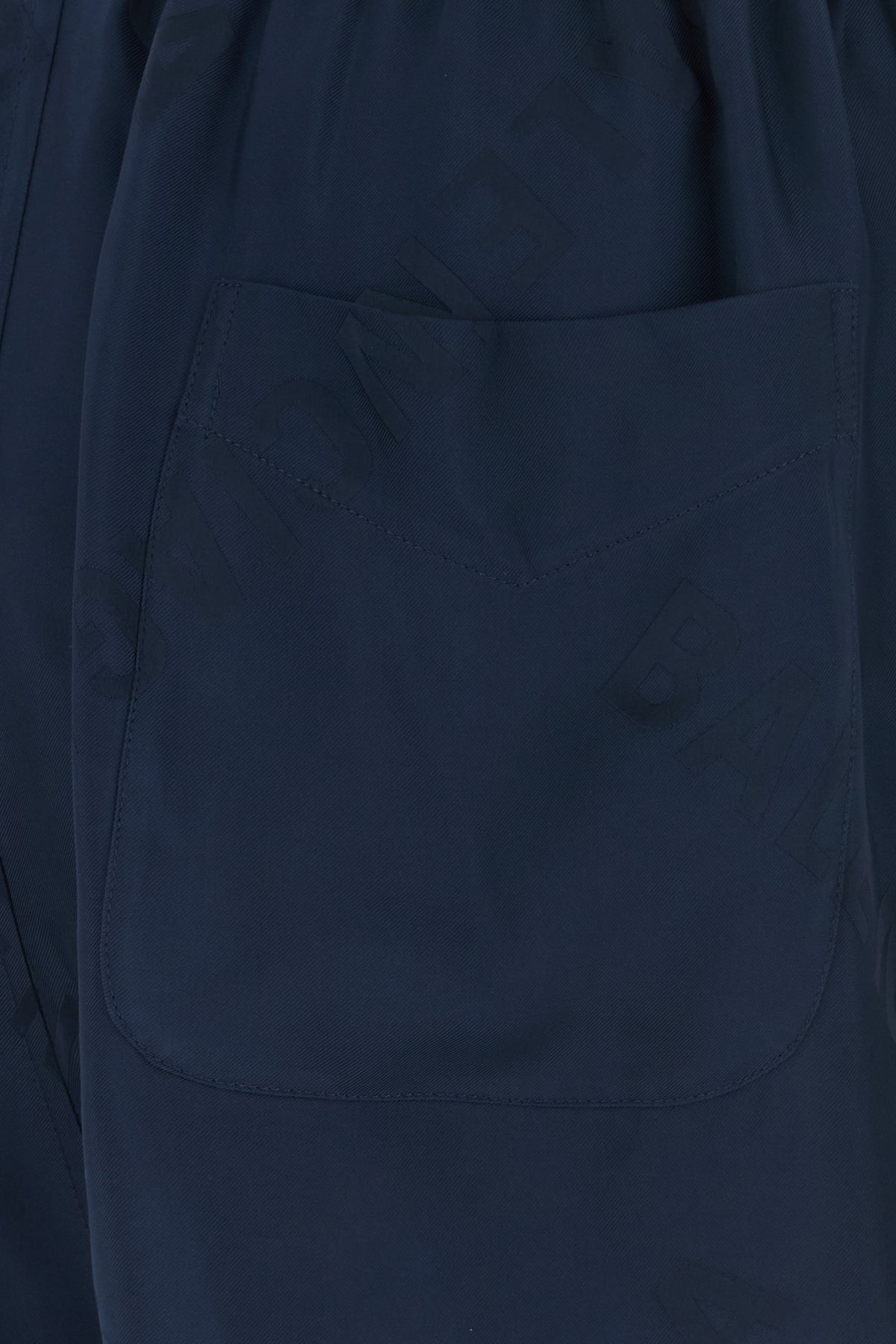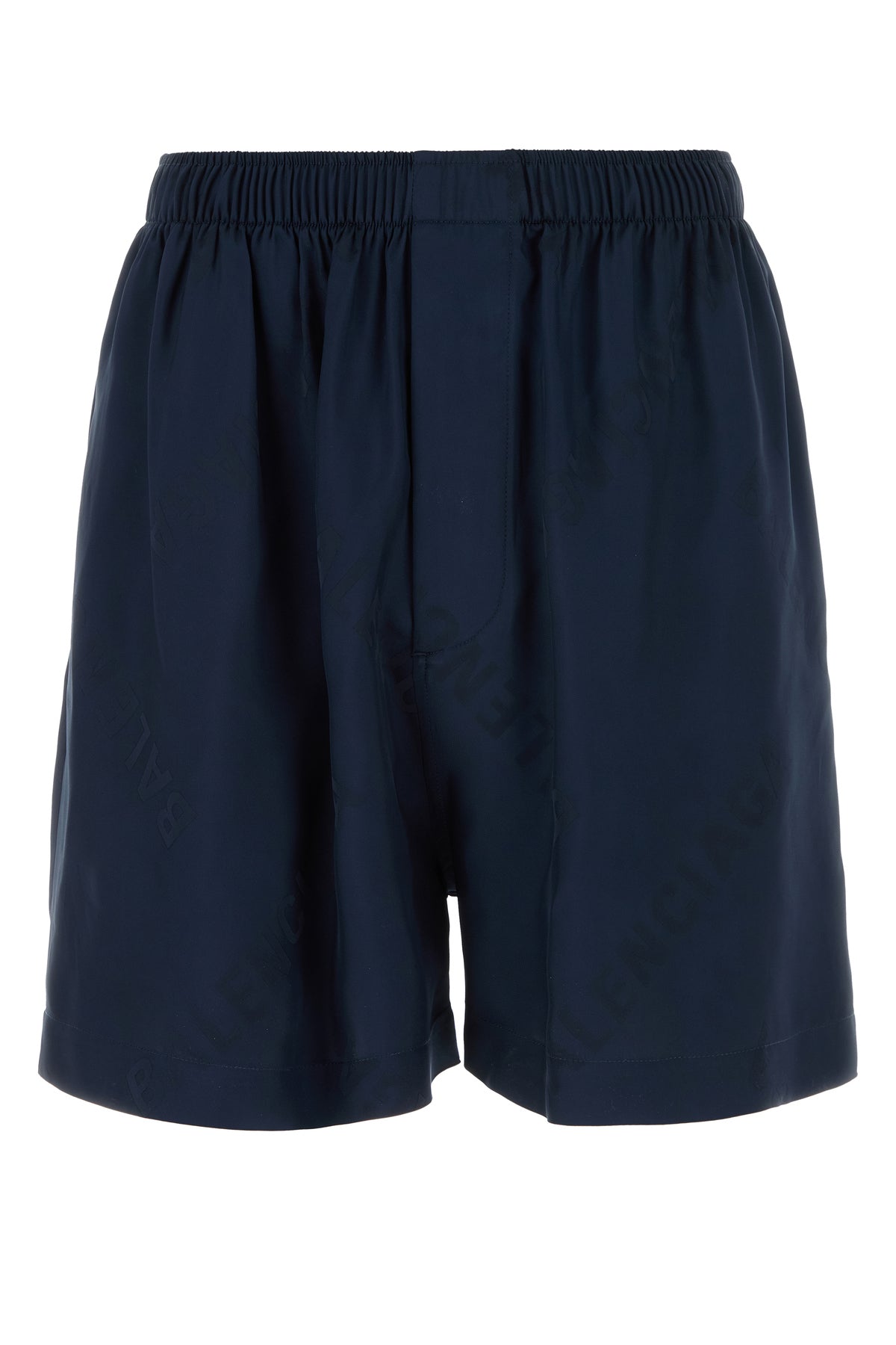 Bermuda shorts realized in satin charactered by tonal embroidered logo on the entire surface.