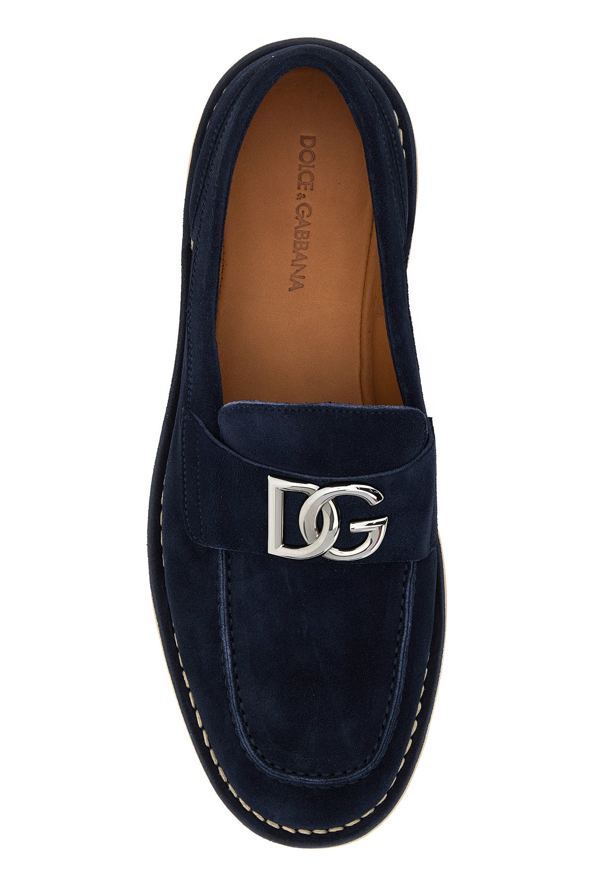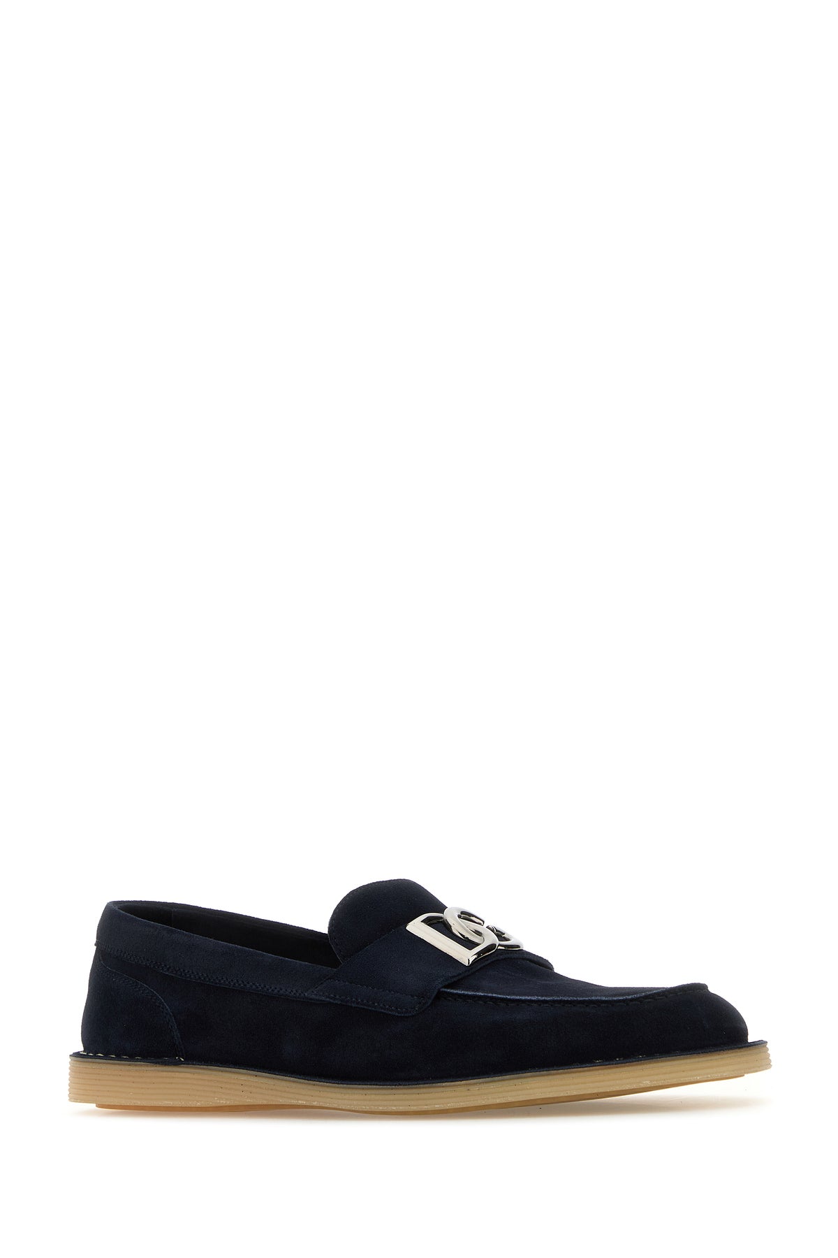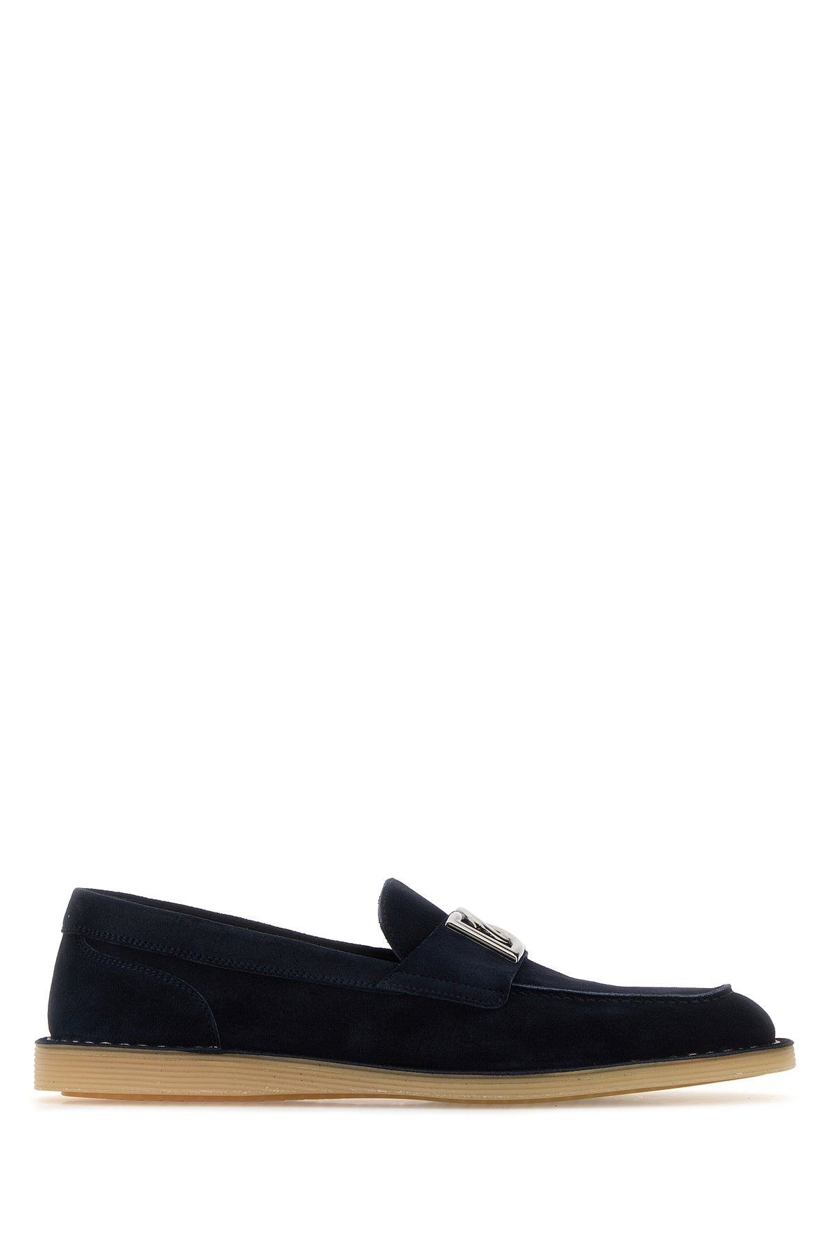 Loafers realized in sued enriched by logoed metal detail on the vamp.
