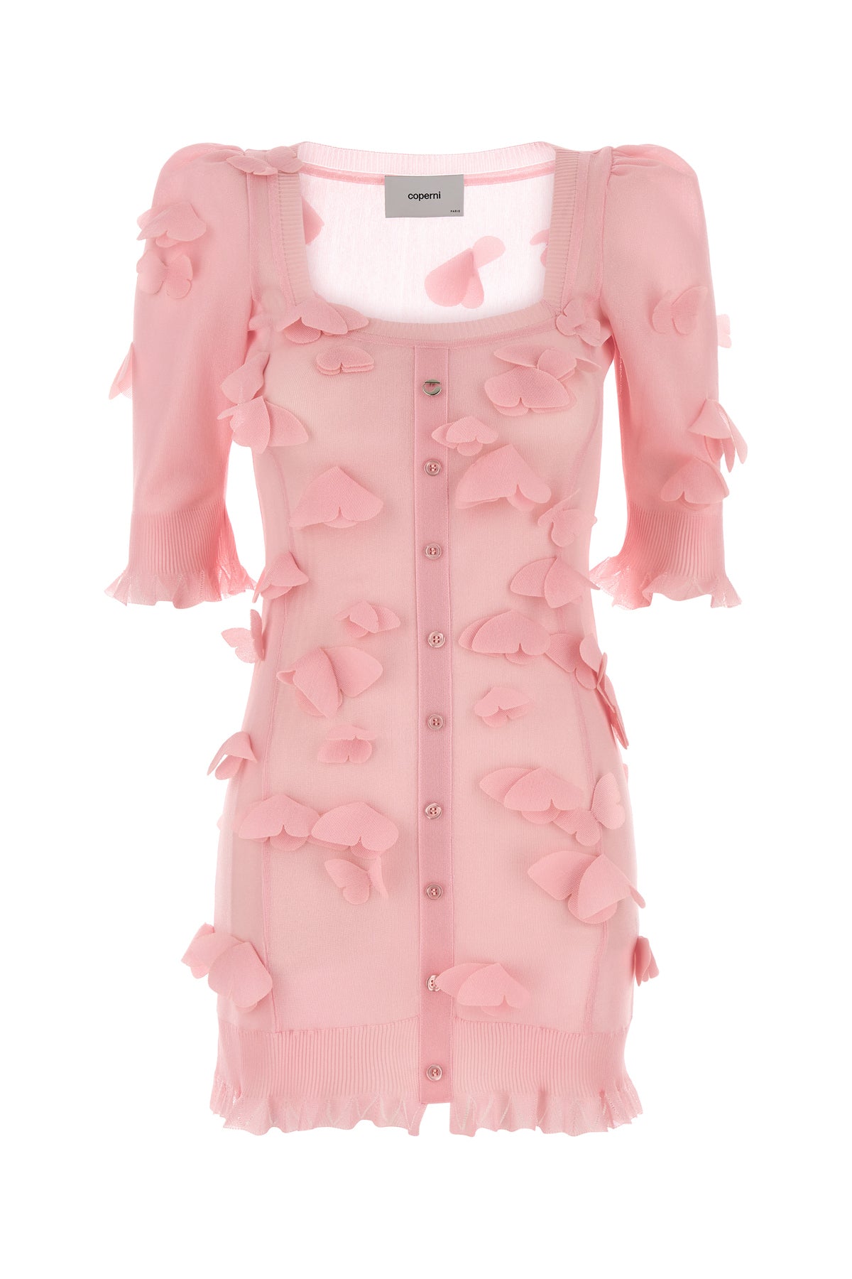 Mini dress realized in knit with lurex threads enriched by Butterfly embellishments on the entire surface and metal C detail at the front.