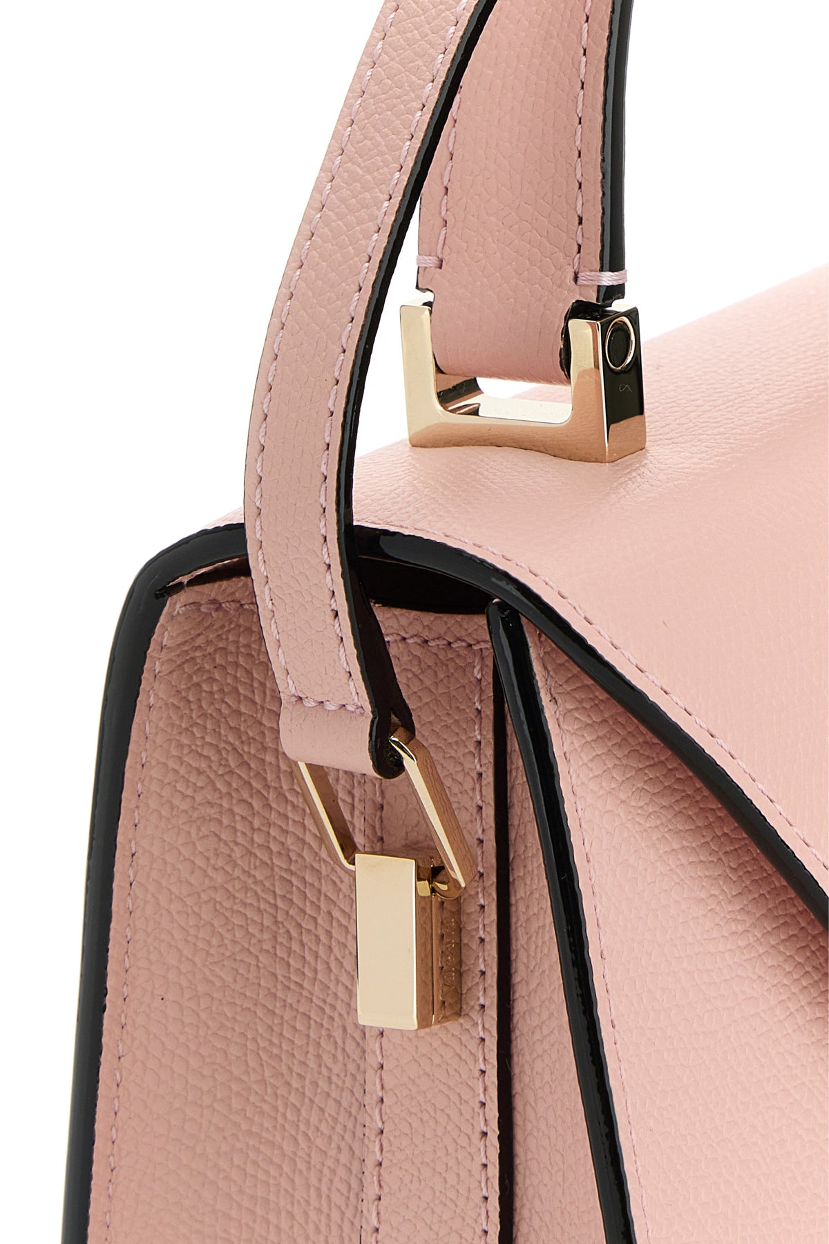 Handbag realized in grained calf leather characterized by tonal leather flat handles.