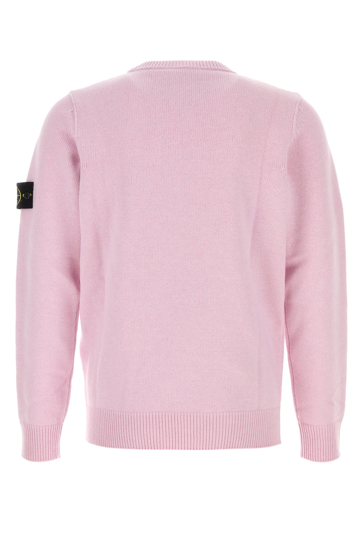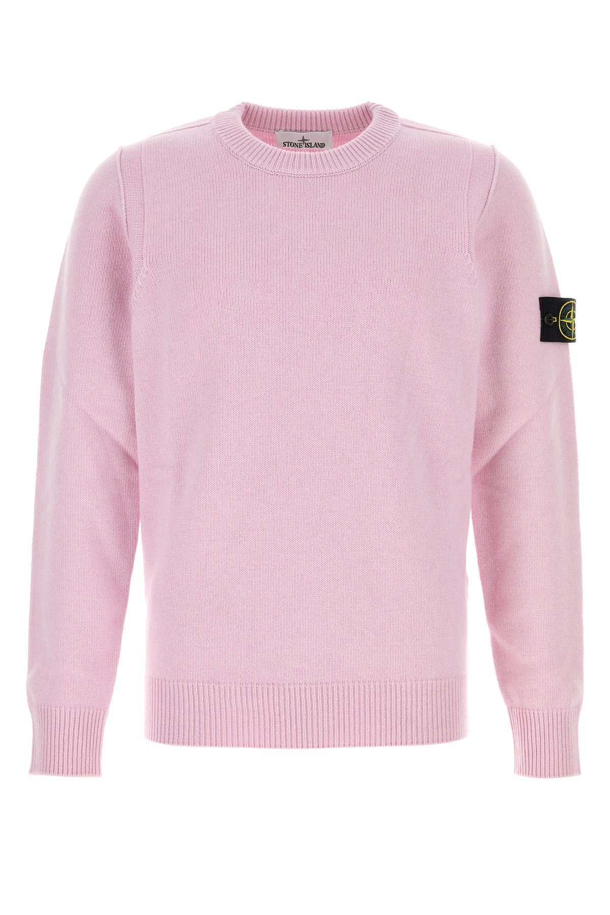 Sweater realized in virgin wool enriched by detachable logoed label on the sleeve.