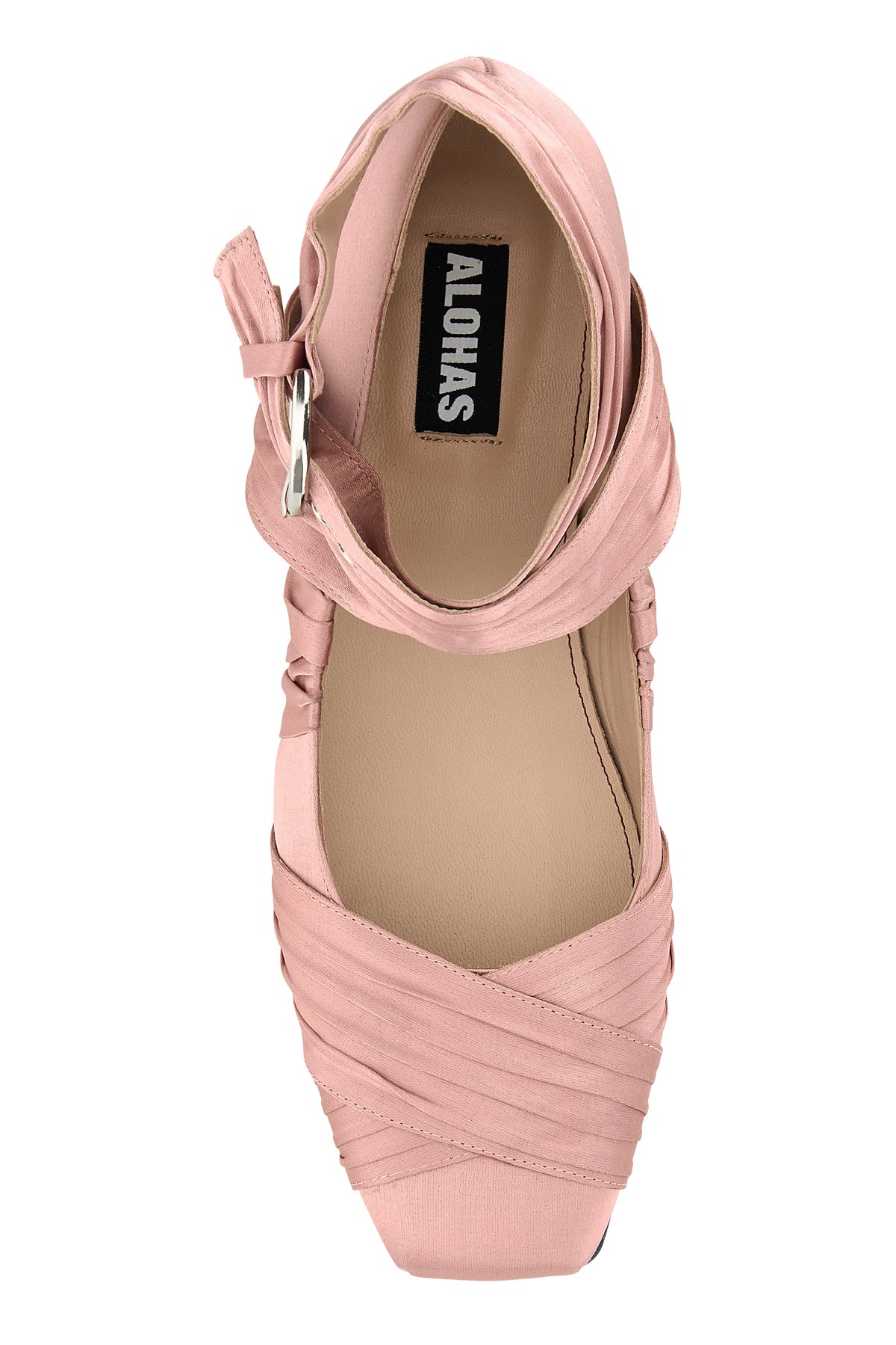 - Adjustable tonal fabric ankle strap closure with metal buckle