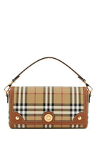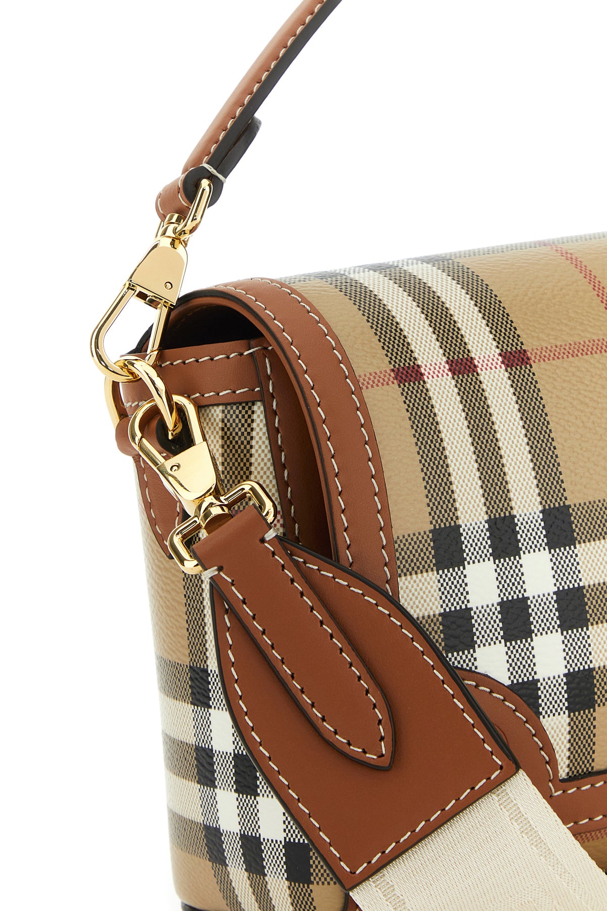 Handbag realized in coated canvas and leather characterized by Tartan motif print on the entire surface.