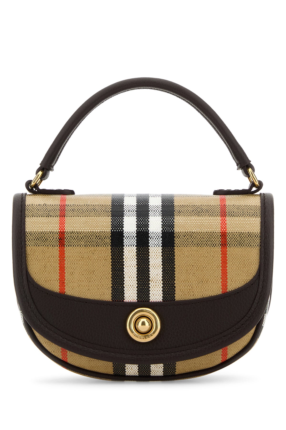 Handbag realized in coated canvas characterized by Burberry Check print on the entire surface.