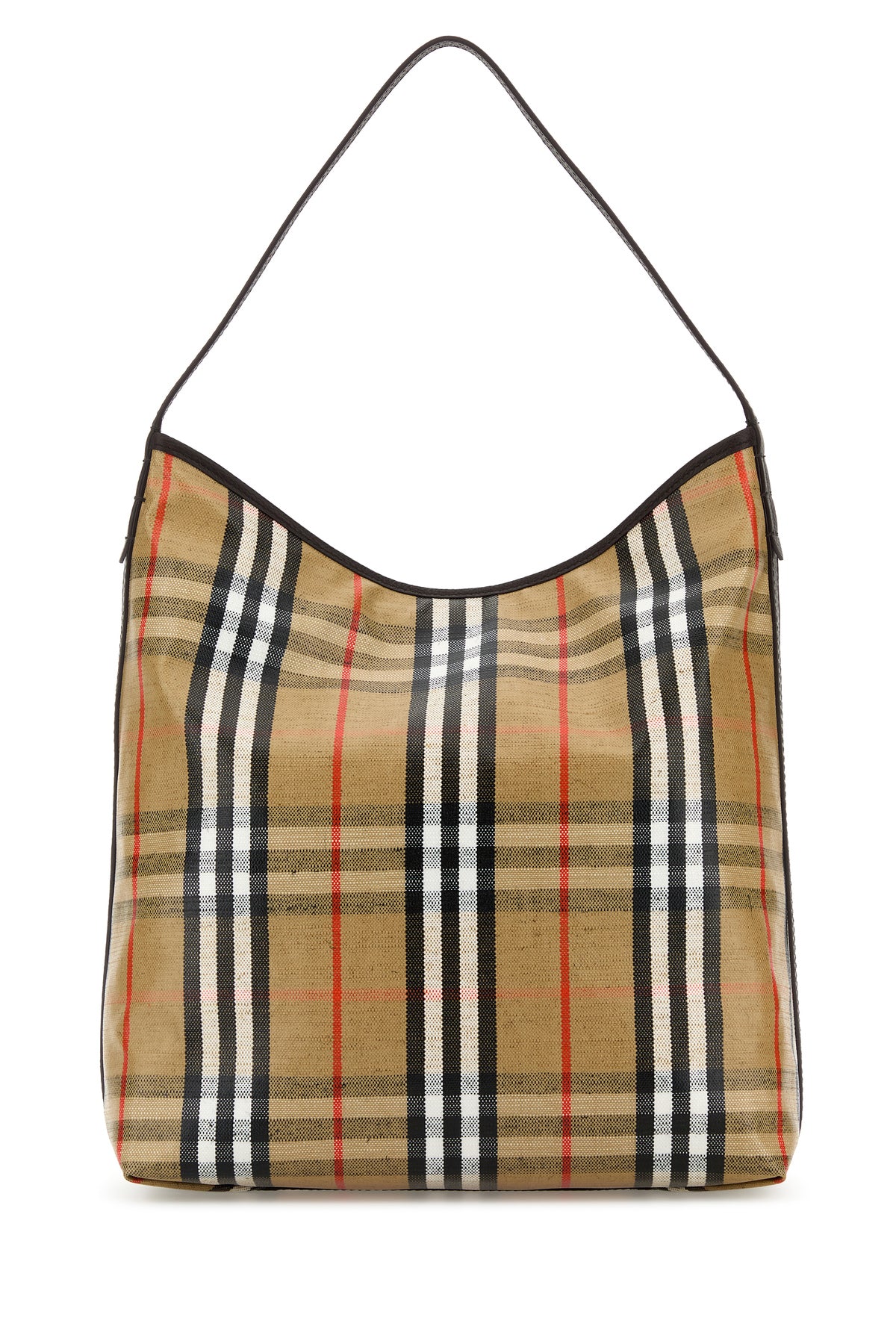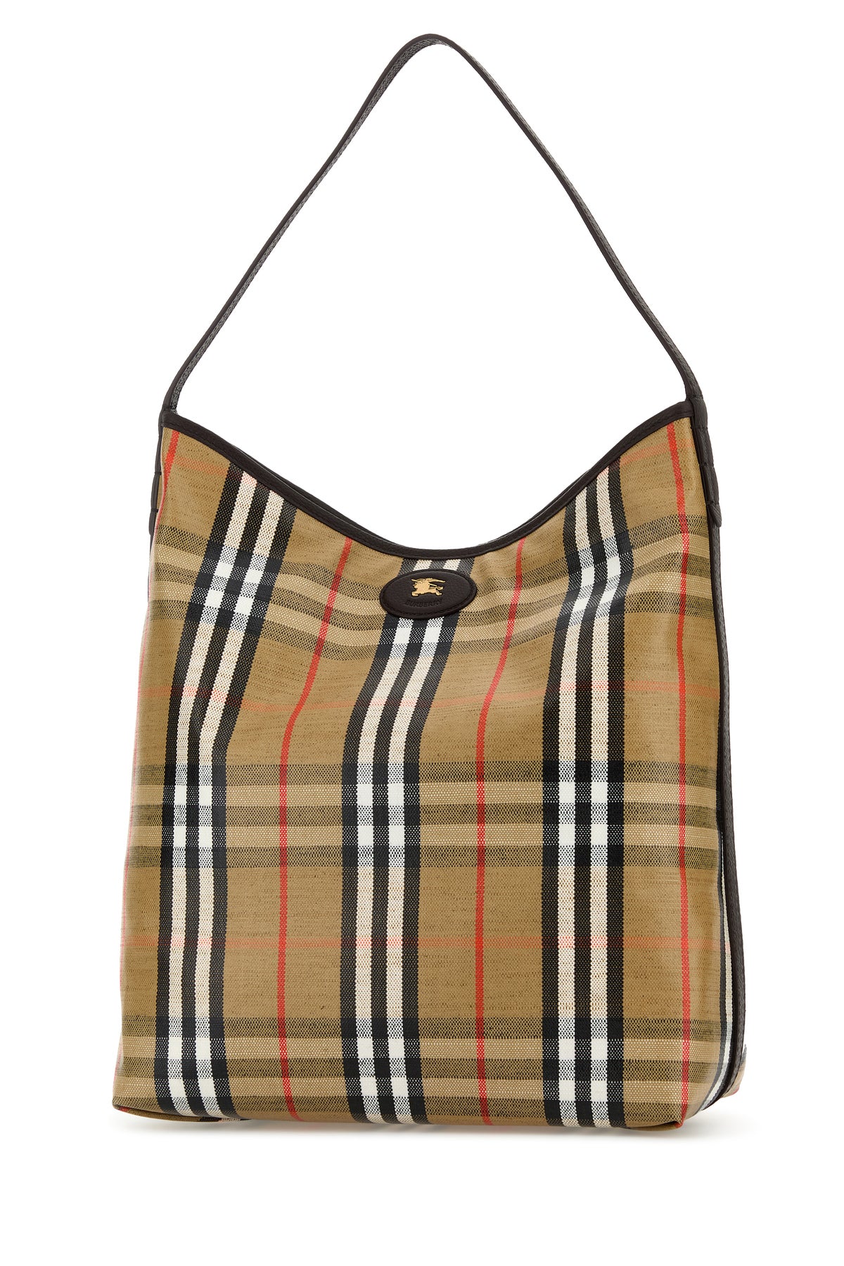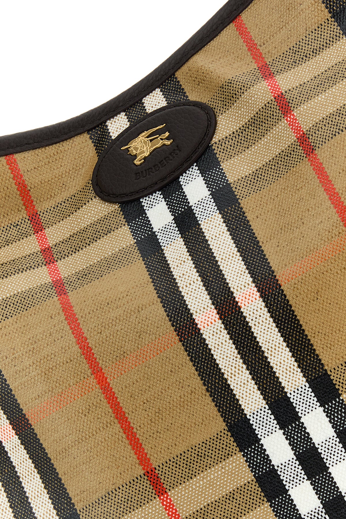 Shopping bag realized in coated canvas characterized by Burberry Check print on the entire surface enriched by Equestrian Knight patch at the front.