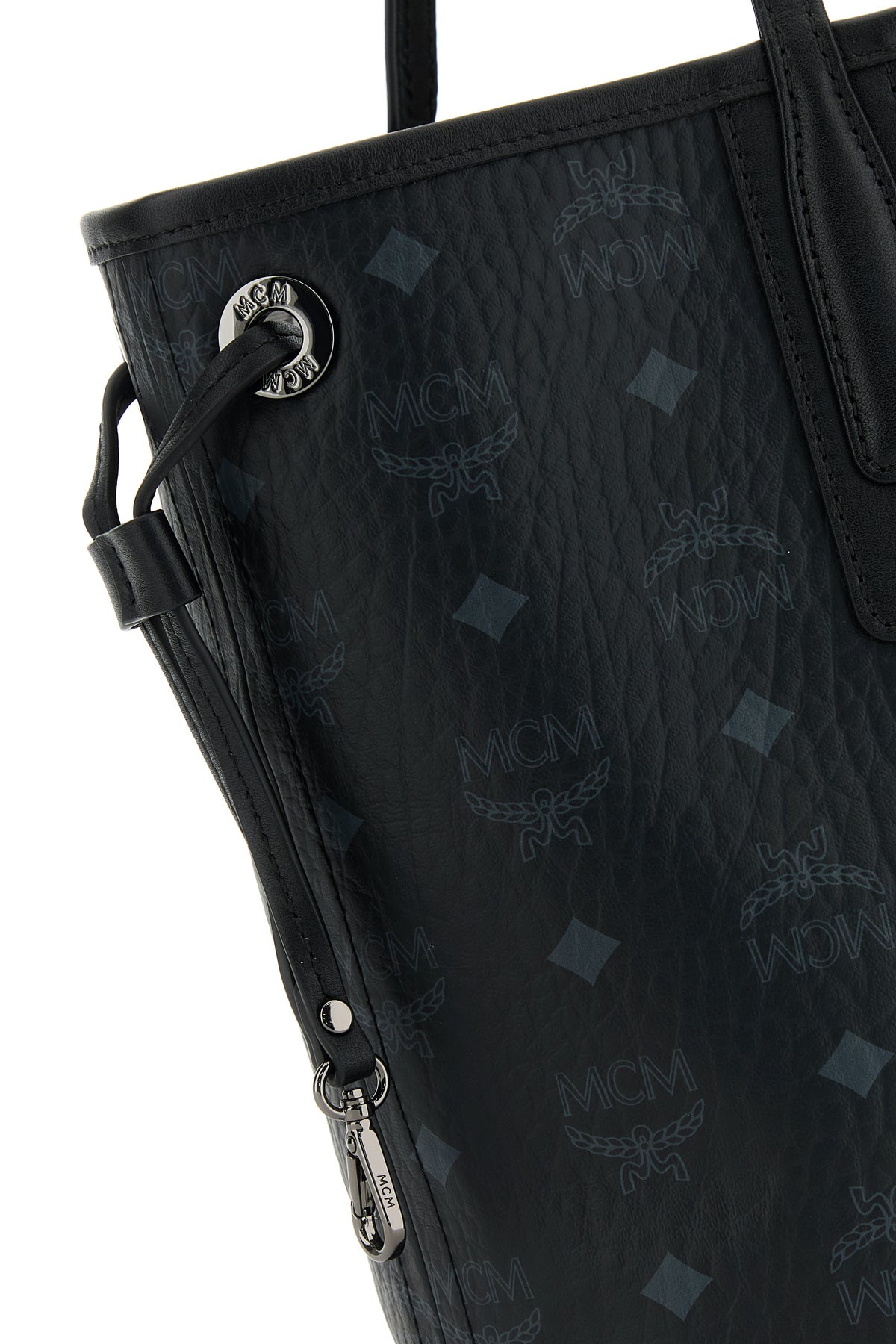 Shopping bag realized in coated canvas characterized by Visetos print on the entire surface enriched by logoed metal plate at the front.