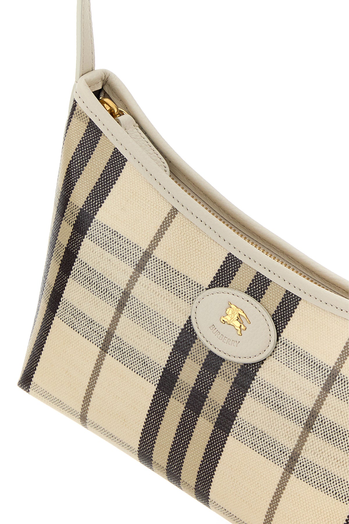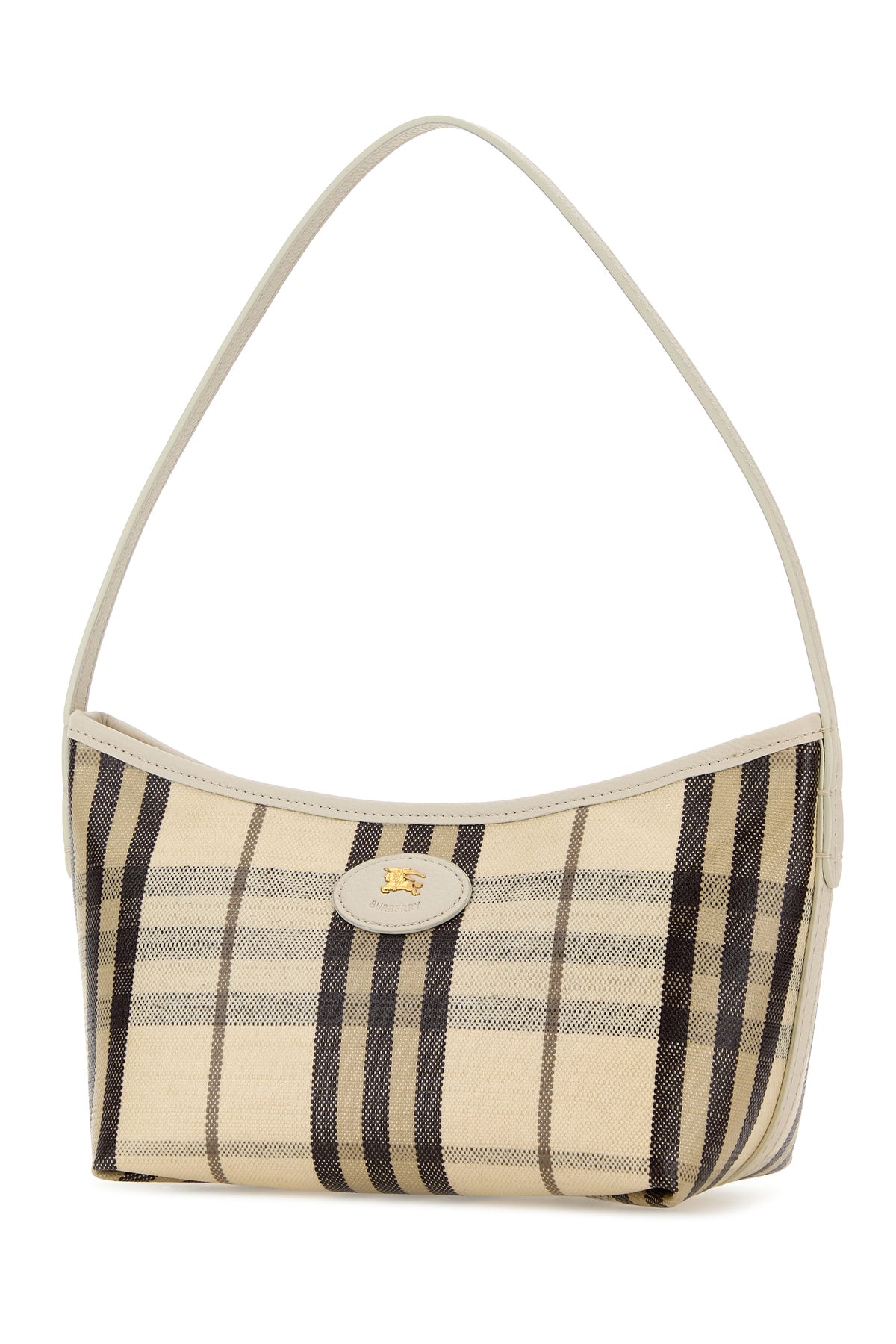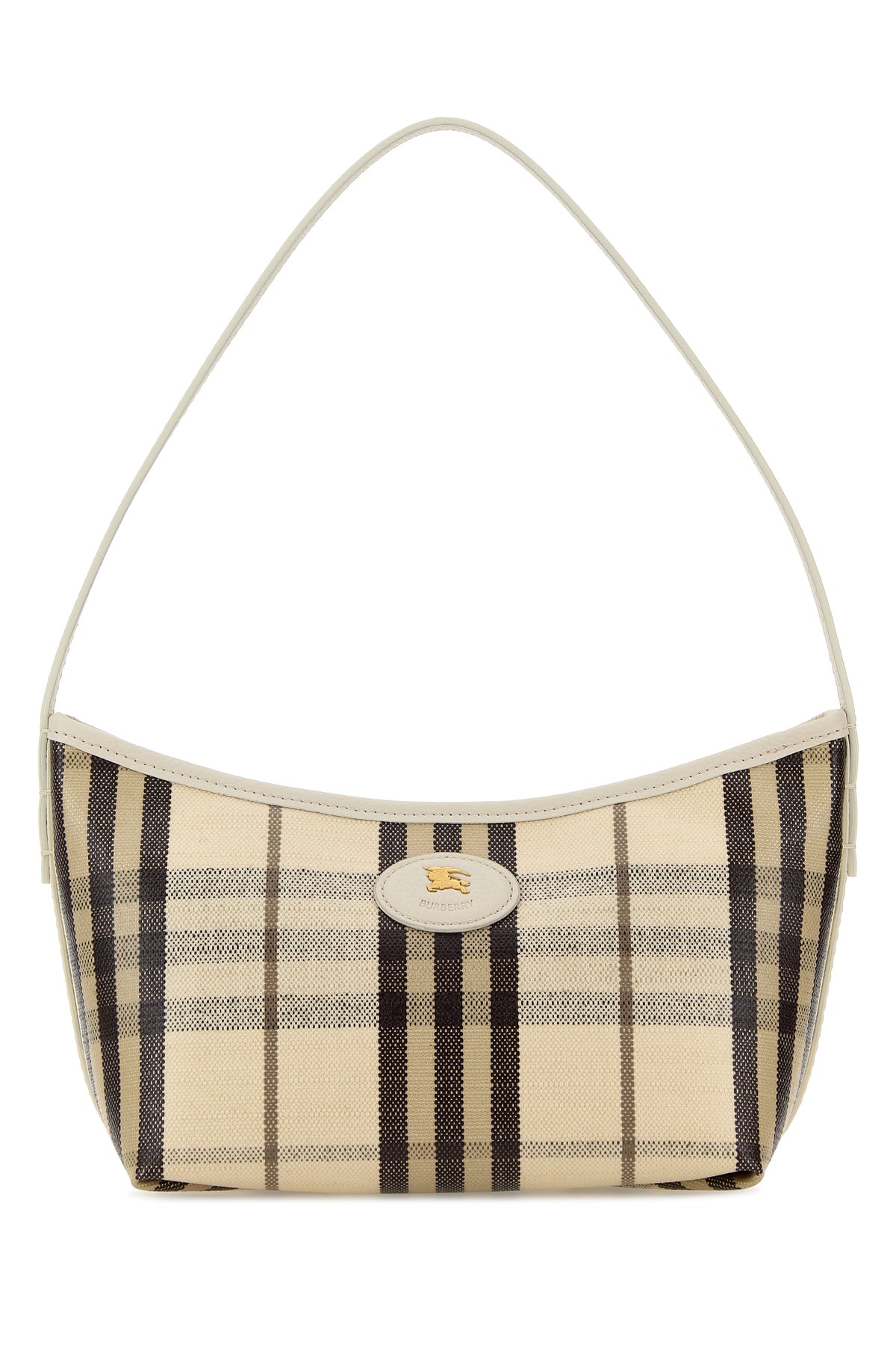 Shoulder bag realized in coated canvas characterized by Burberry Check print on the entire surface enriched by Equestrian Knight patch at the front.