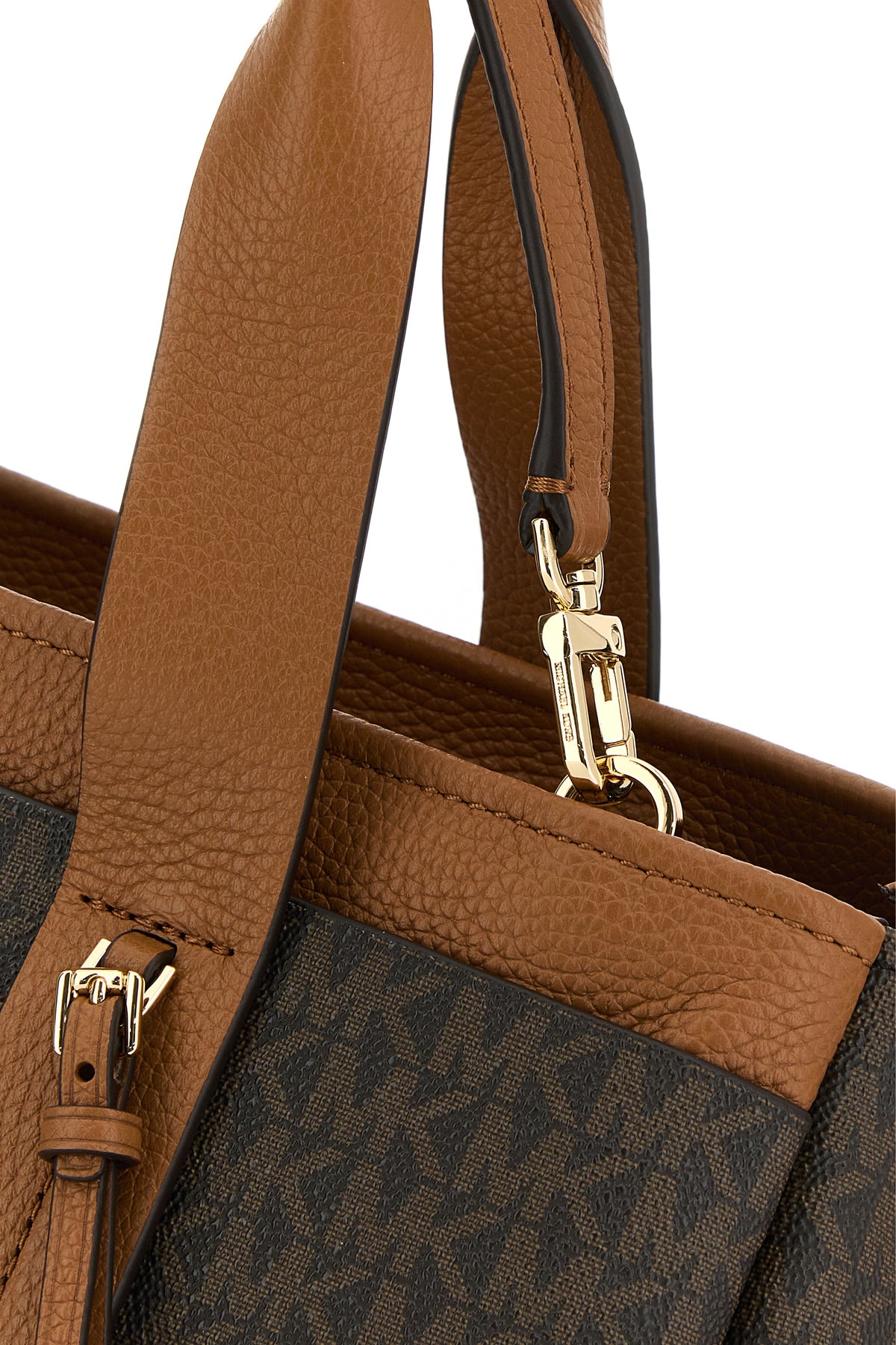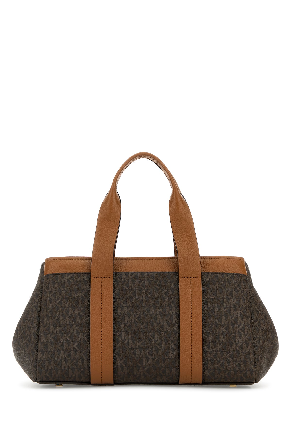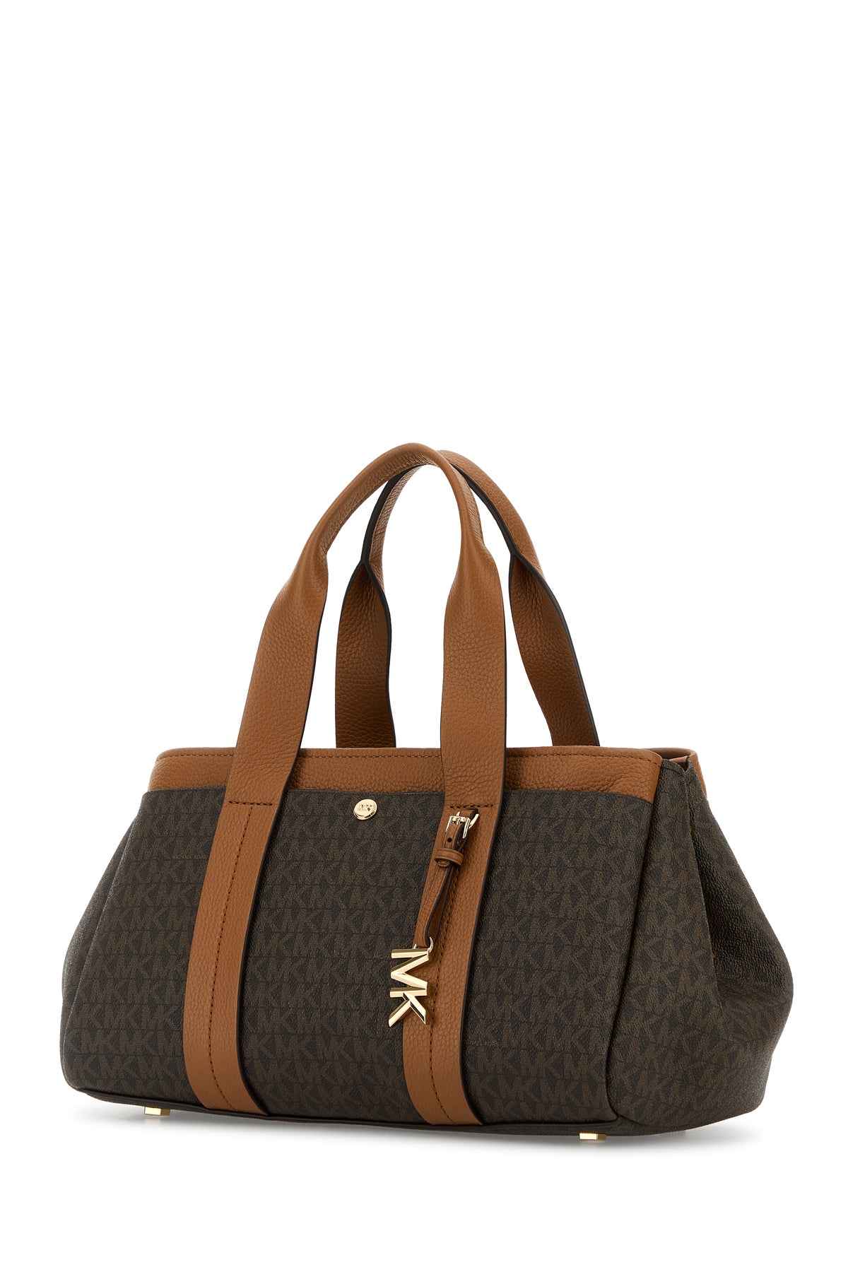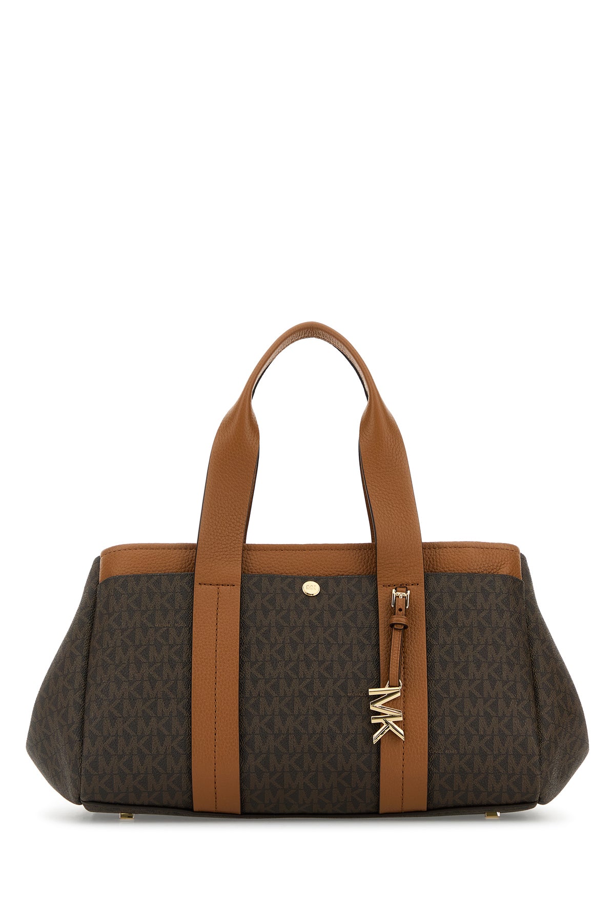 Handbag realized in coated canvas characterized by printed logo on the entire surface.