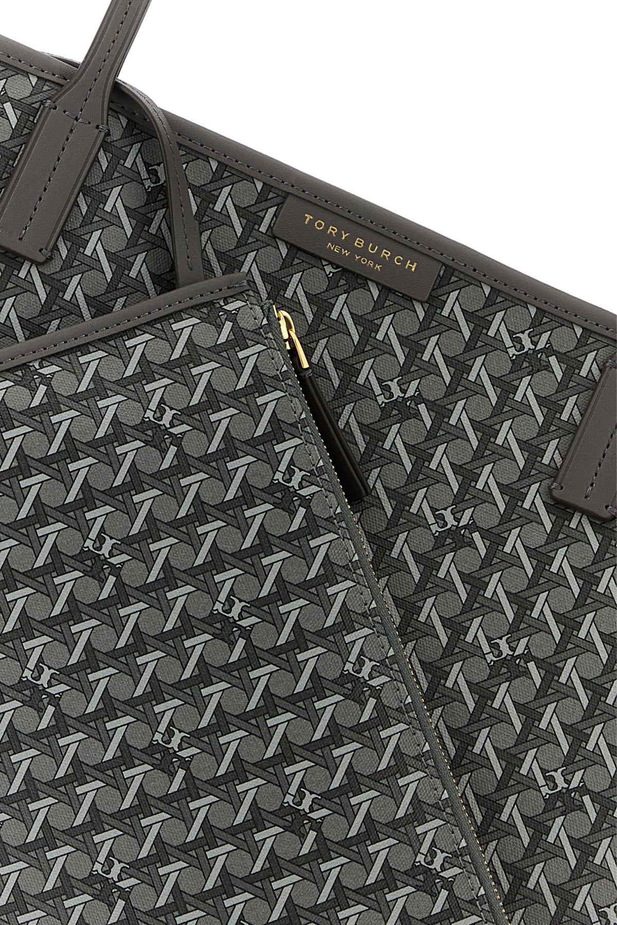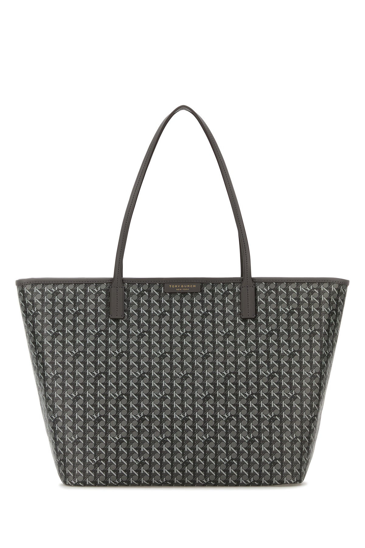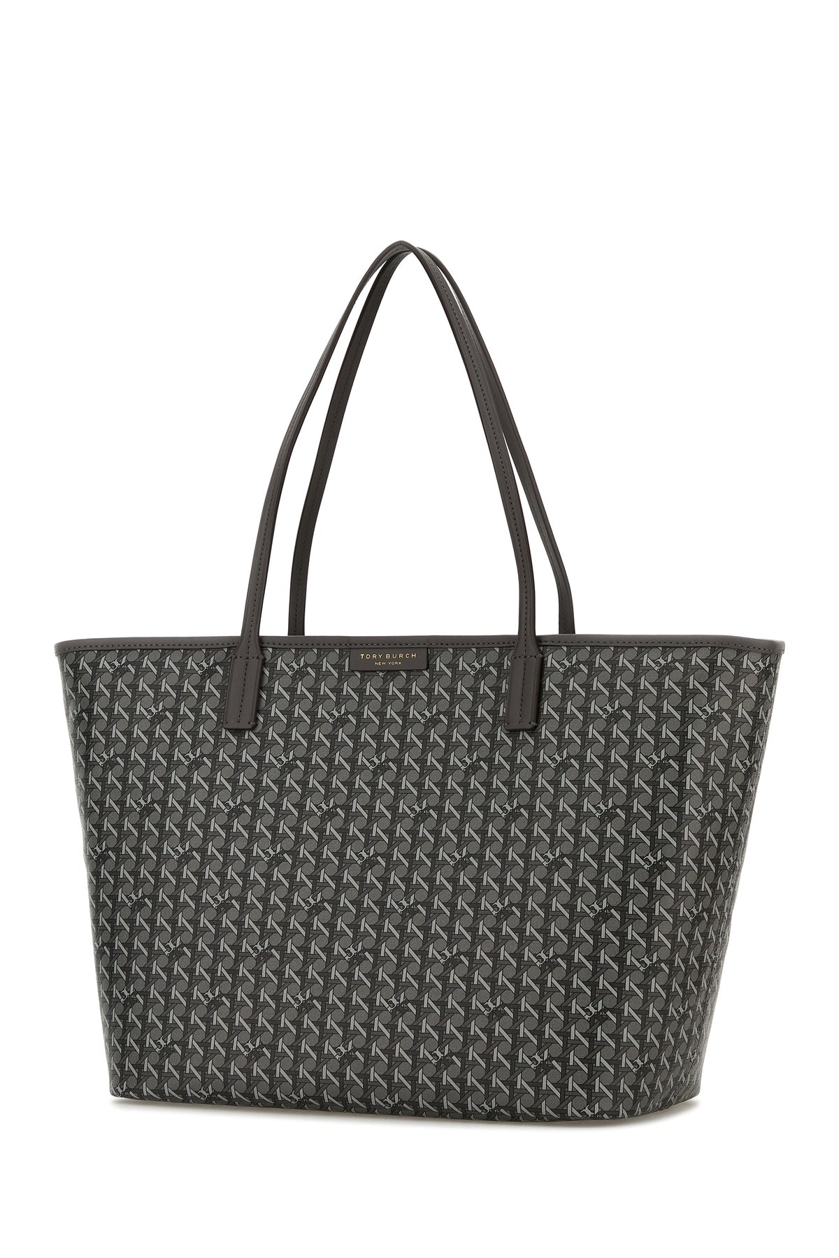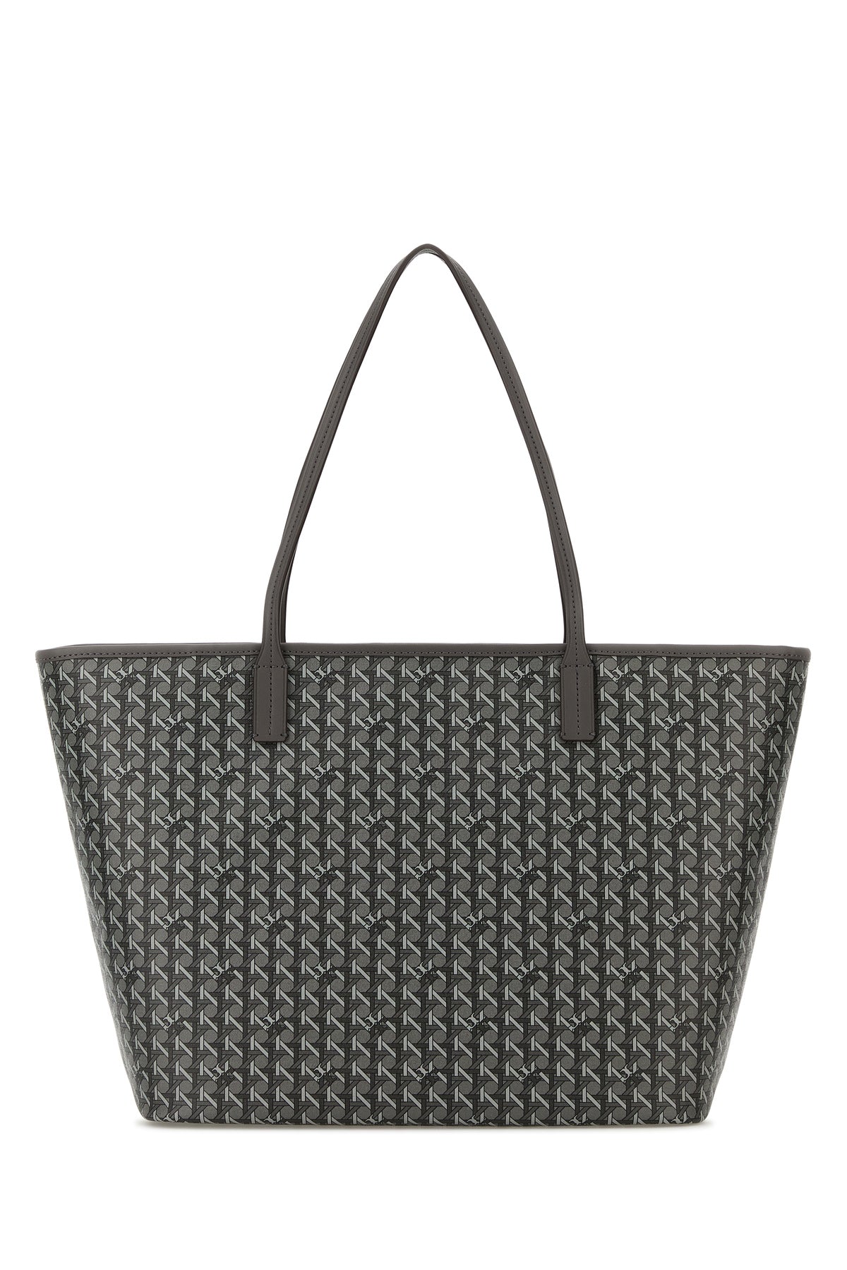 Shopping bag realized in coated canvas characterized by logoed print on the entire surface and lamianted printed logo at the front.