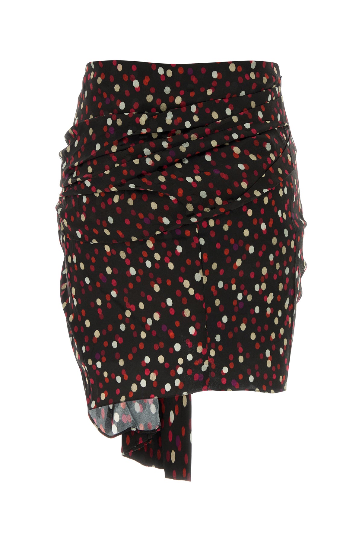 Skirt realized in stretch silk characterized by polka doit motif print on the entire surface.