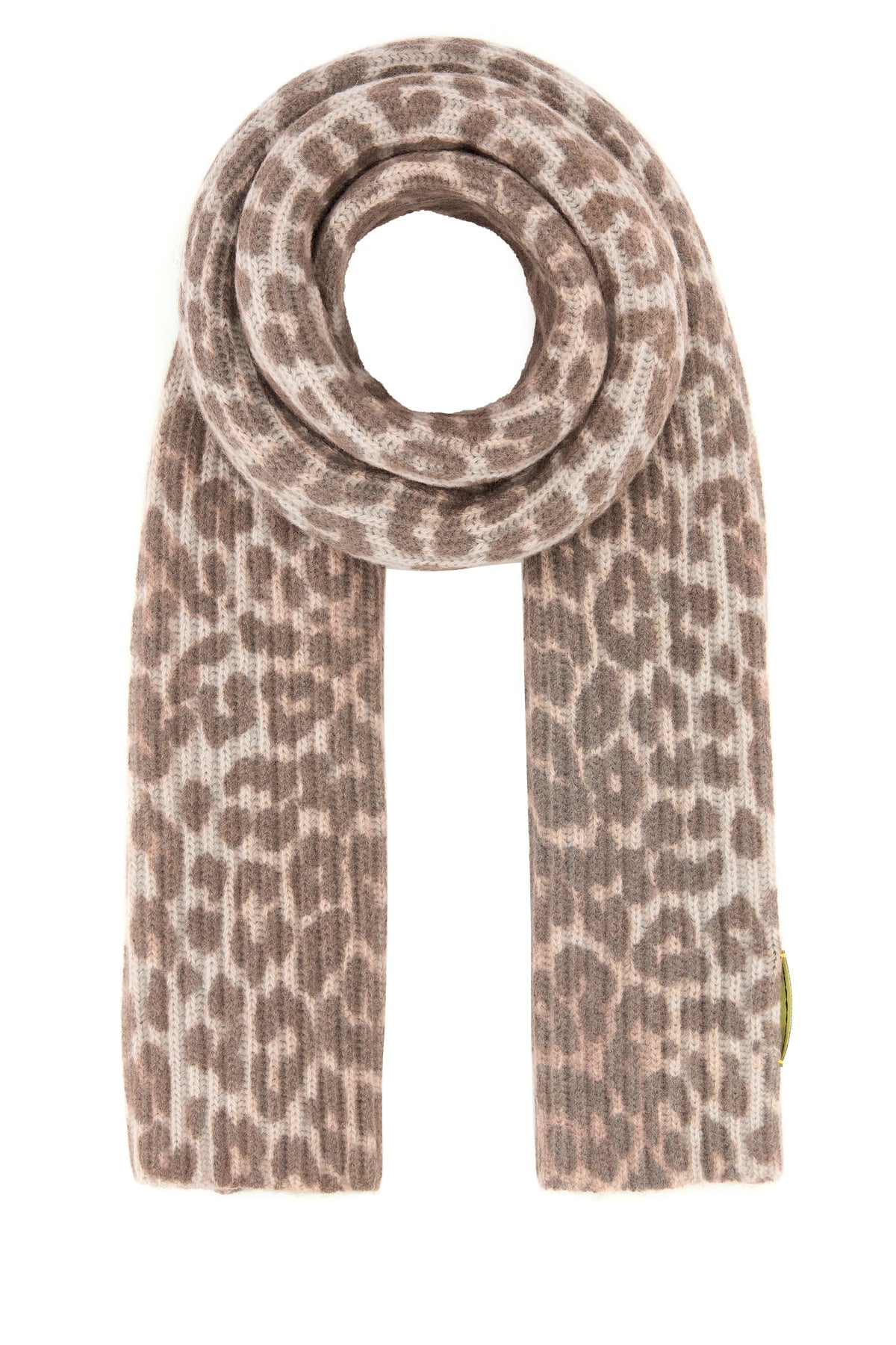 Scarf realized in wool blend characterized by animalier print on the entire surface enriched by GANNI patch on the hemline.