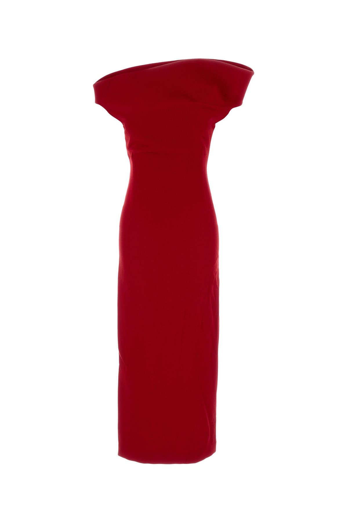 Fitted dress realized in stretch wool characterized by squared neckline.