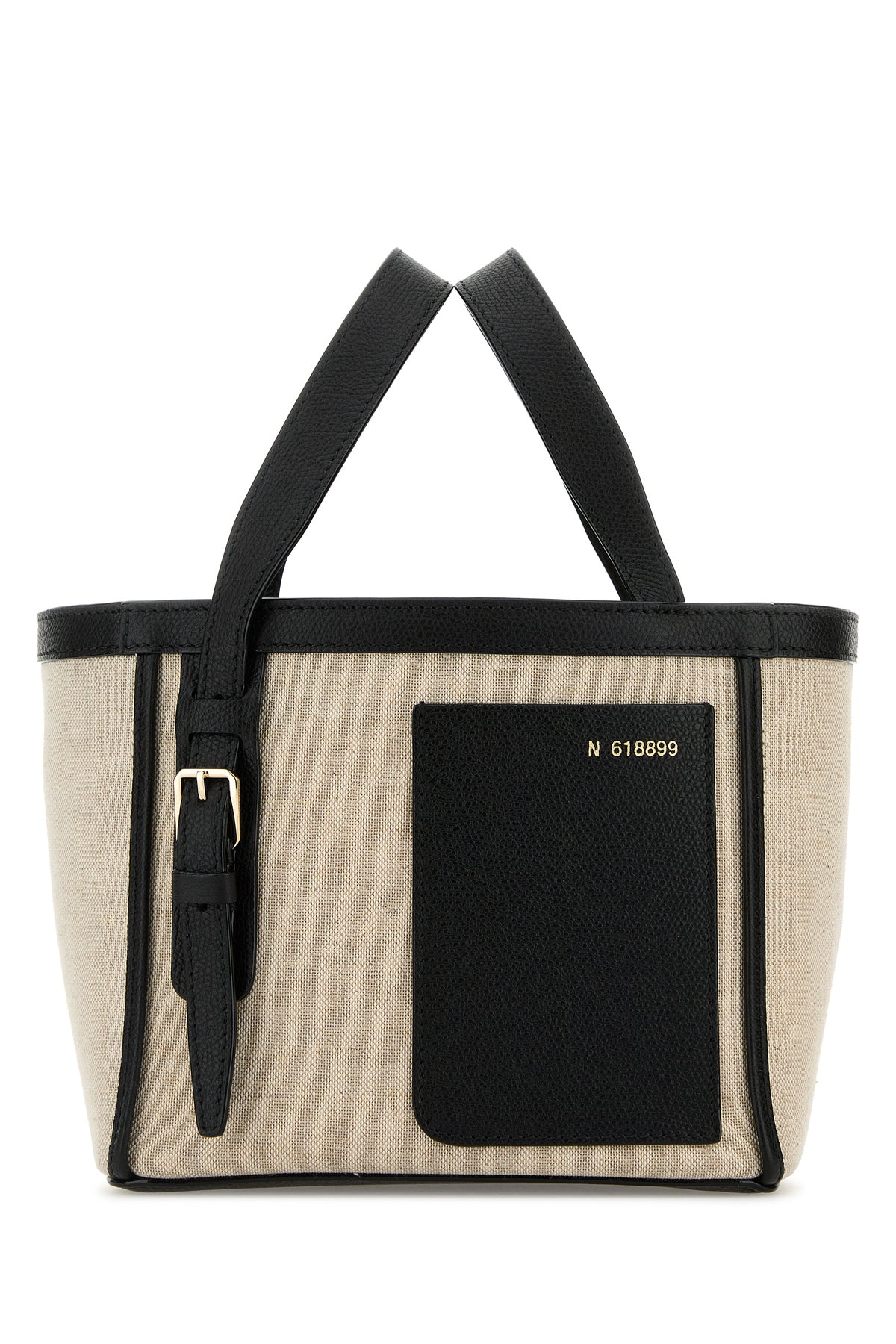 - Detachable contrasting leather shoulder strap