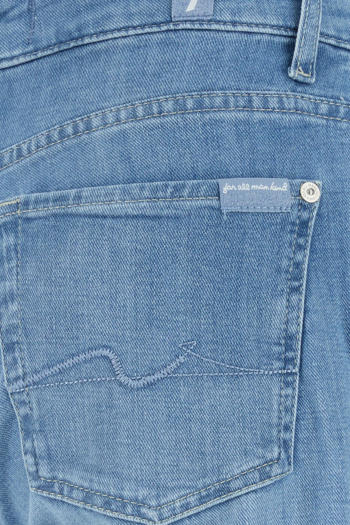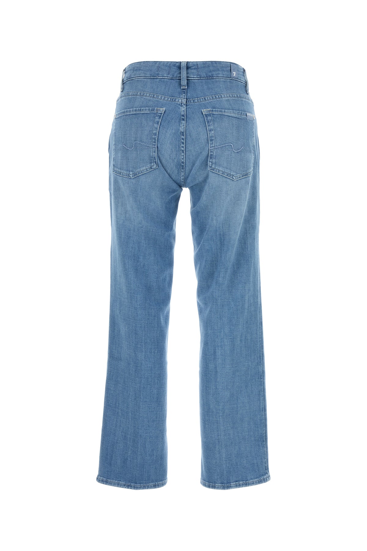 Jeans realized in stonewashed stretch cotton denim enriched by tonal logoed label at the back.